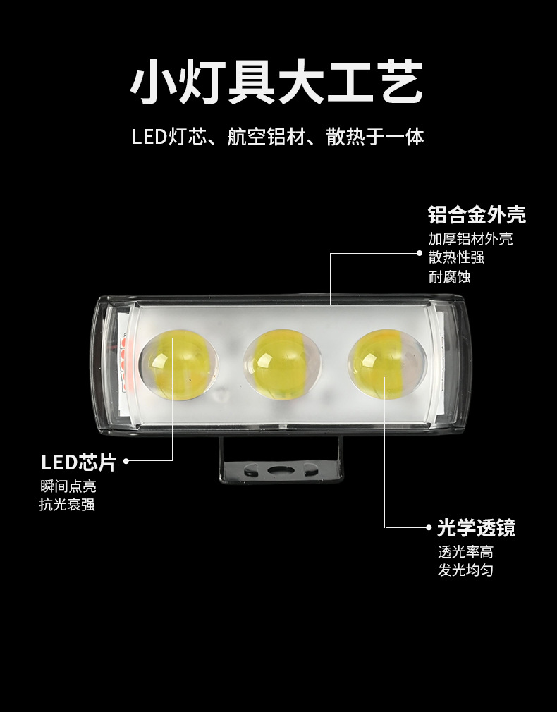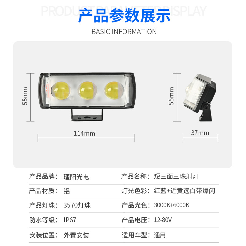 Короткий трехсторонний прожектор для мотоцикла с тремя бусинами