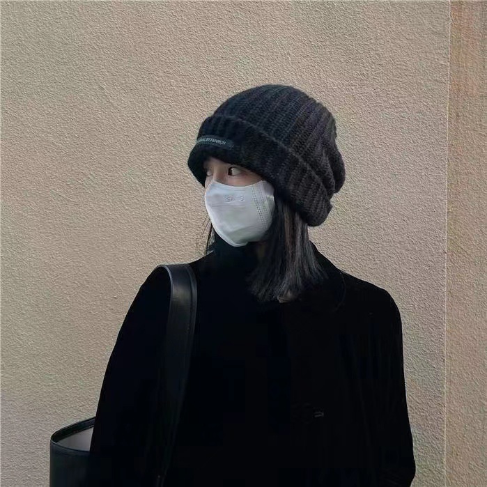 Шерстяная шапка, вязаная шапка, новая зимняя универсальная теплая шапка с большими полями, однотонный женский стиль в европейском и американском стиле, бархат