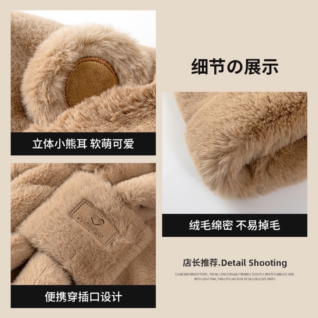 Утолщенный шарф со встроенной плюшевой шапкой-медведем и грелкой для шеи, милый зимний универсальный велосипедный теплый флисовый капюшон для защиты ушей.