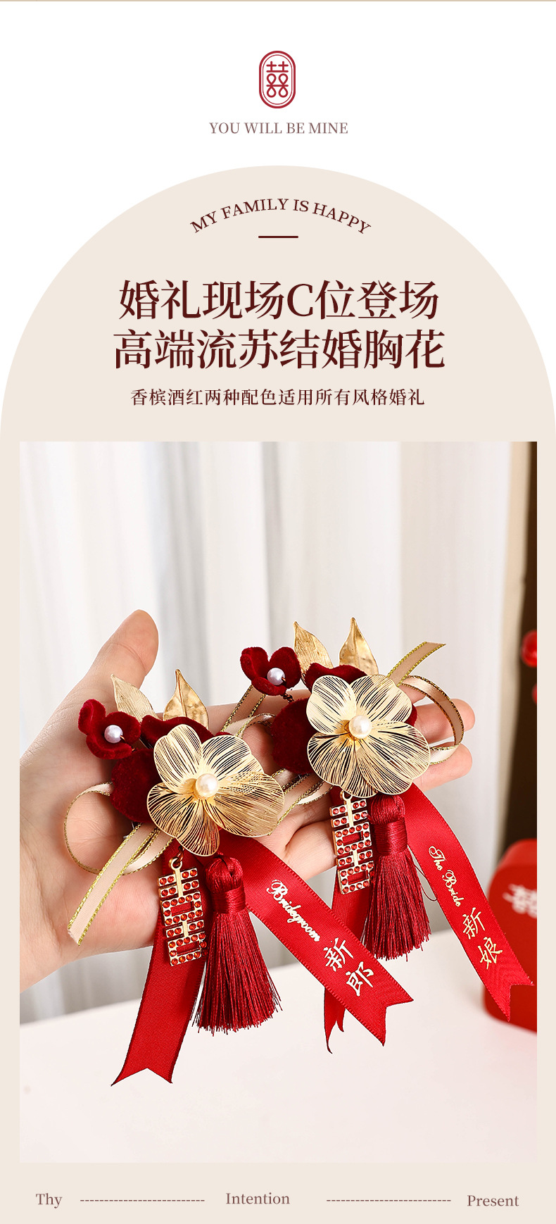 Алмазный свадебный корсаж-золотая кисточка; Алмазный свадебный корсаж-бордовый стиль с кисточками; Бутоньерка с бриллиантовым счастьем и кисточкой цвета шампанского