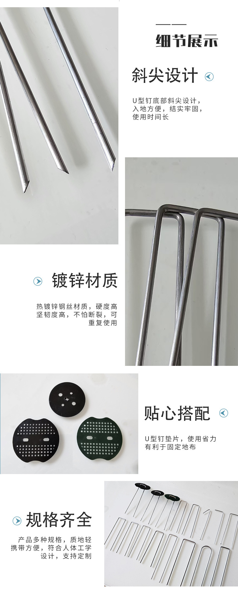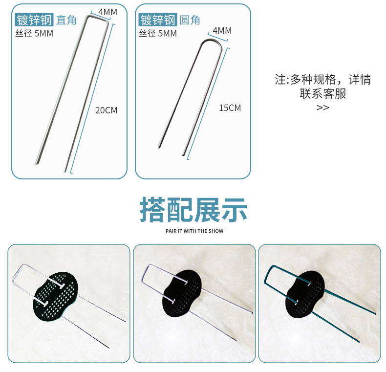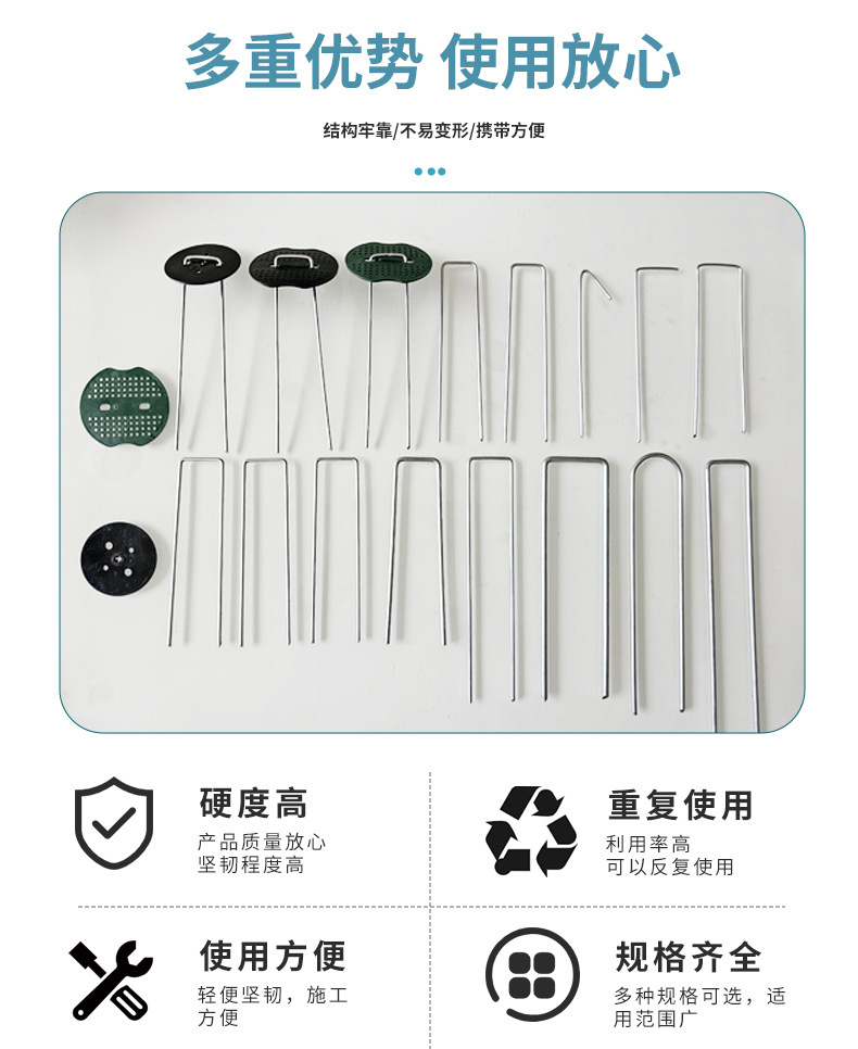 Садоводство, фиксация травяной ткани, трехмерное крепление сетки, фиксация решетки шестерни, фиксация искусственного газона, фиксация цемента, инженерная фиксация защиты наклона и т. д.