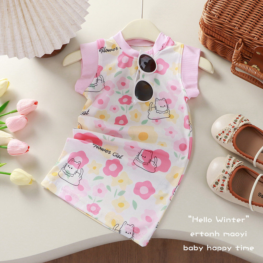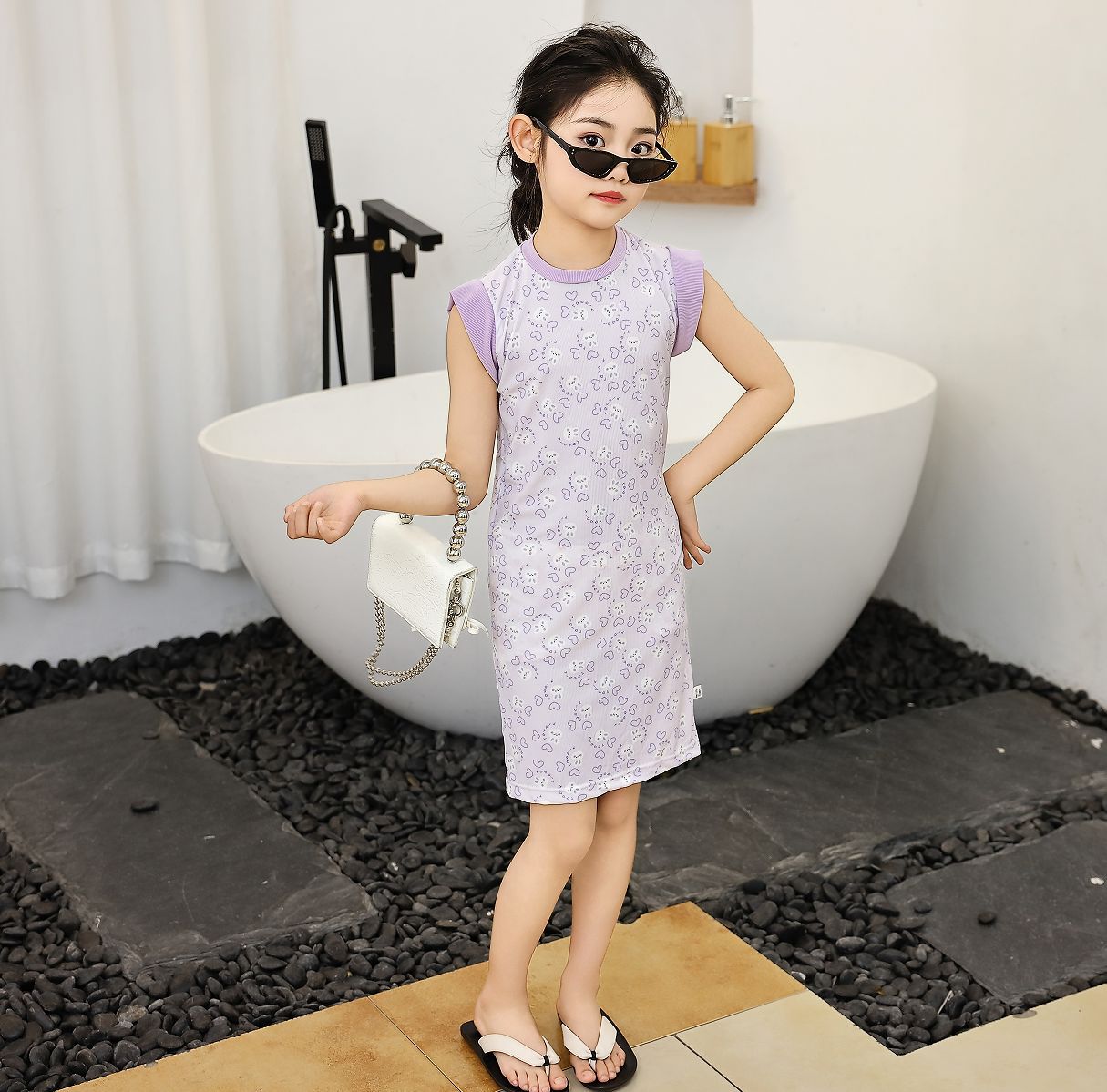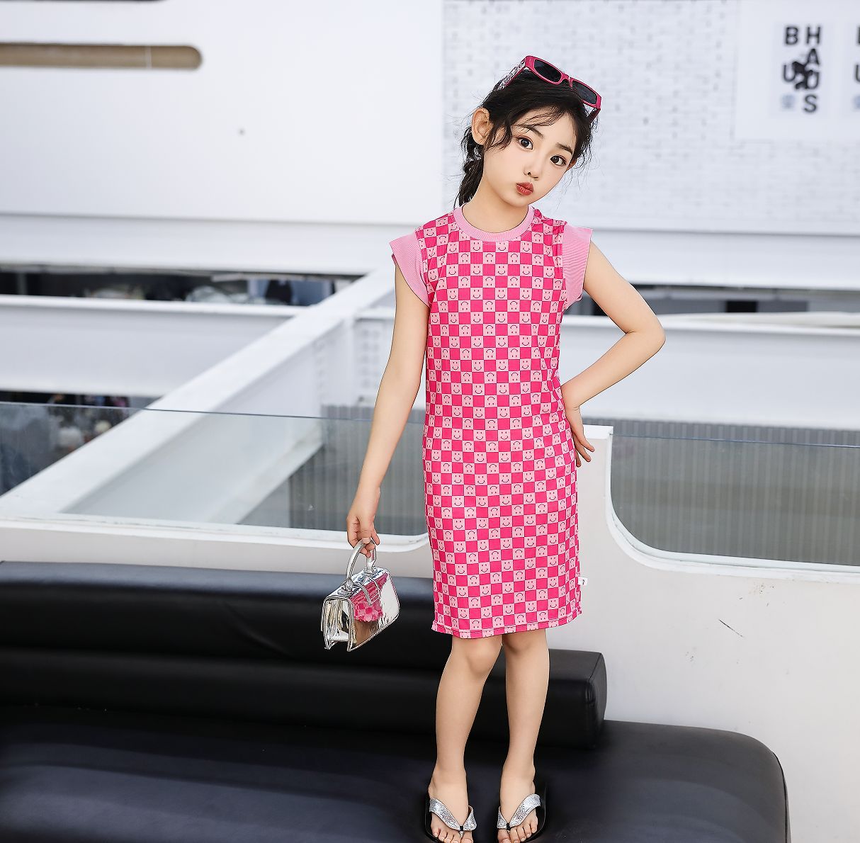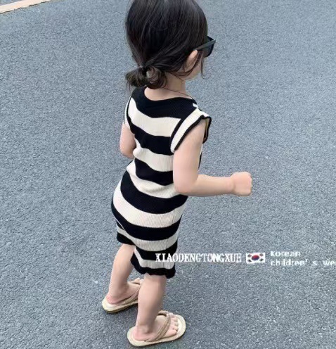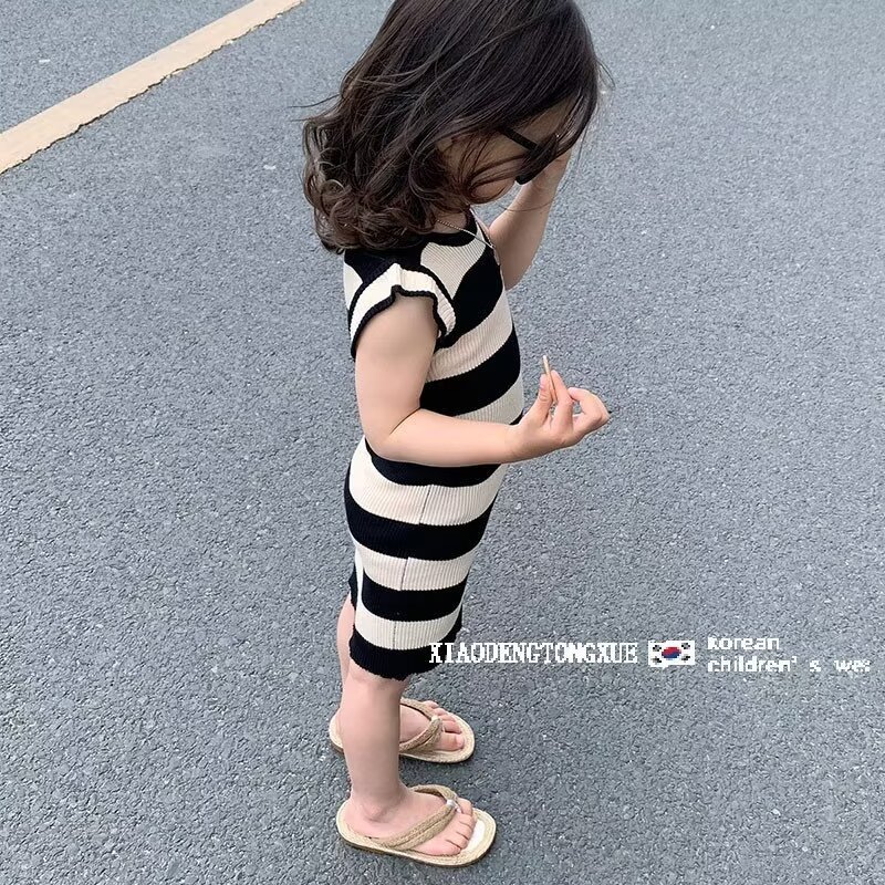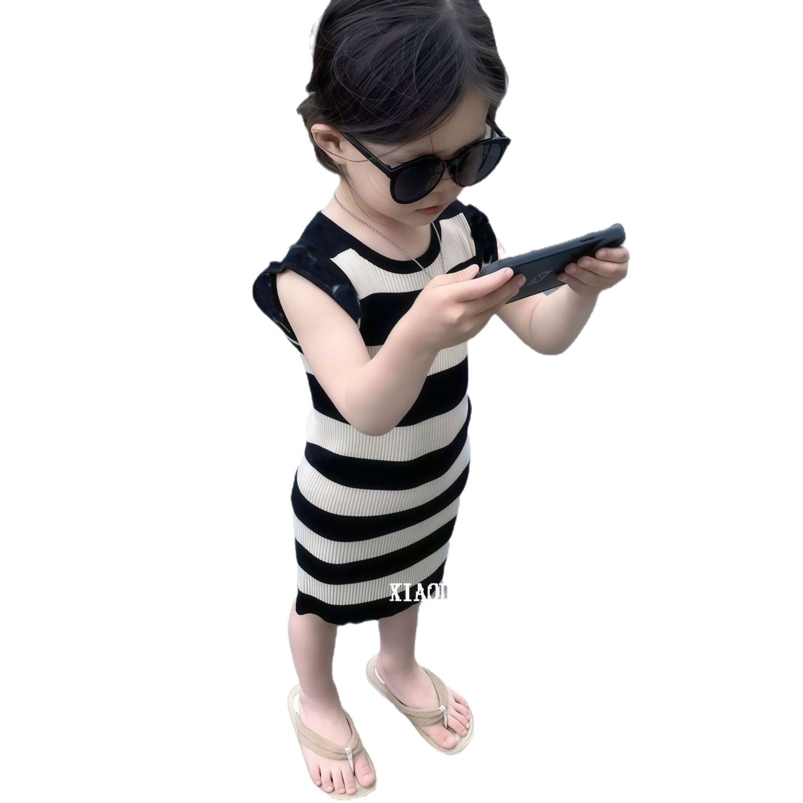 Корейская девушка летнее платье без рукавов 2025 новый стиль иностранная детская полосатая юбка детская одежда оптом юбка типа