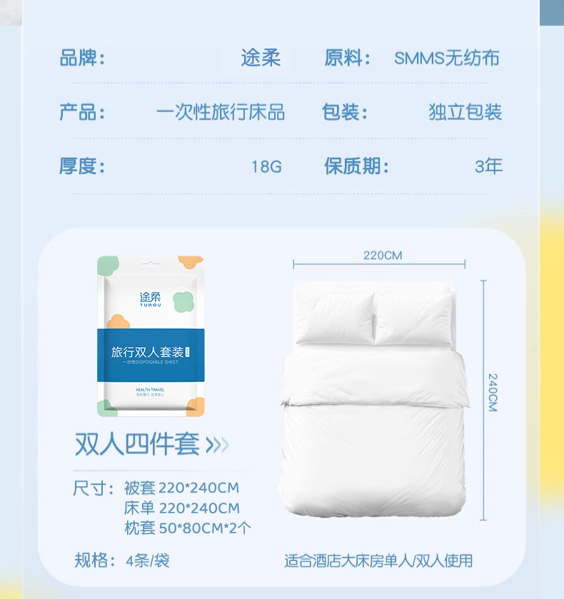 Портативный одноразовый простыни одеяло наволочки из четырех частей для путешествий