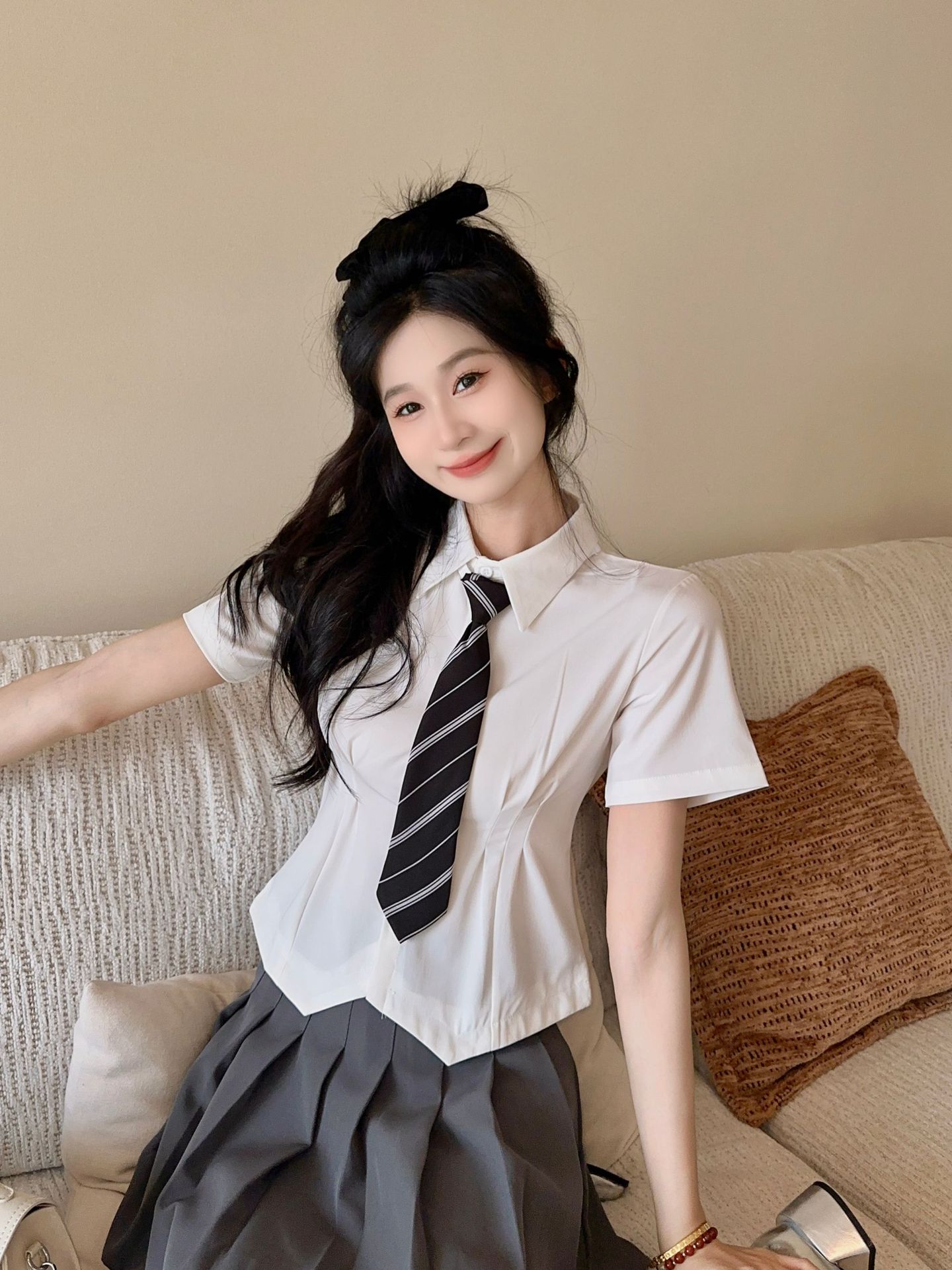 Униформа для талии jk Академия Spice Girl рубашка с короткими рукавами женская осень топ чисто тонкая белая рубашка