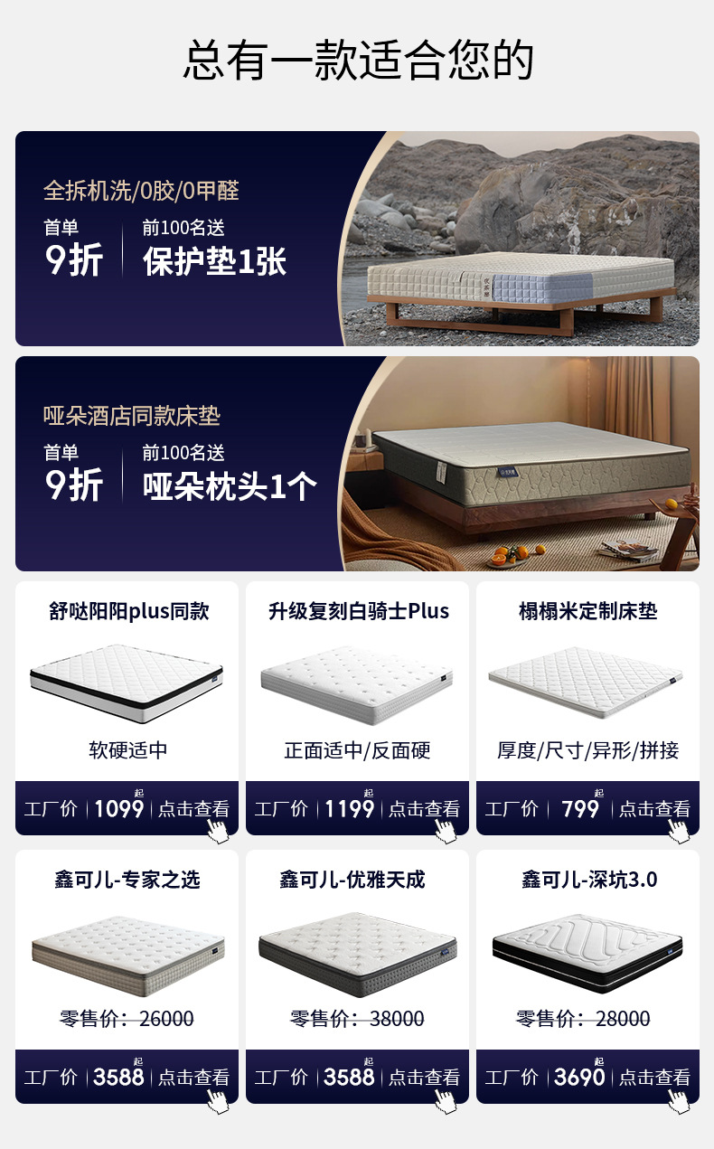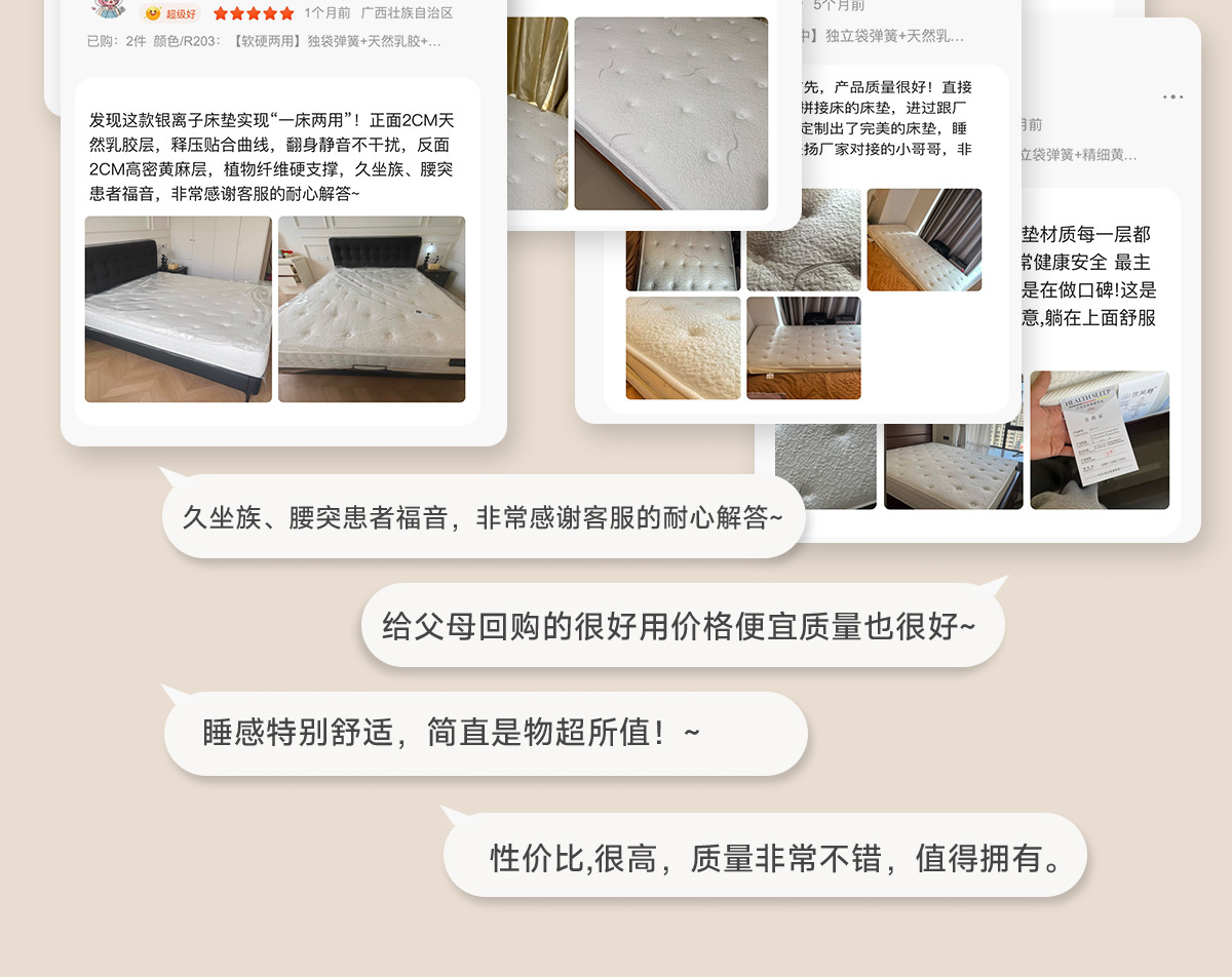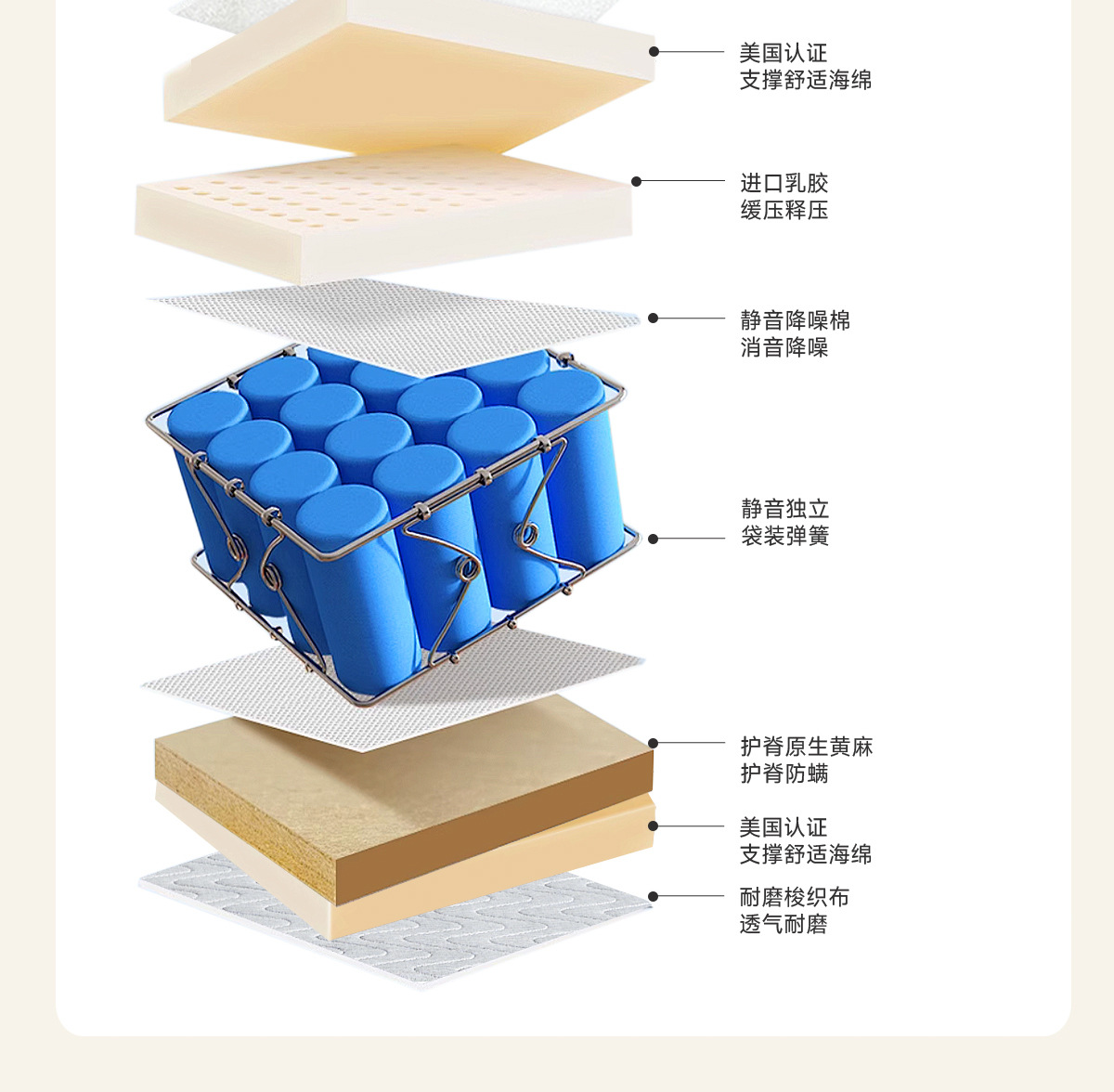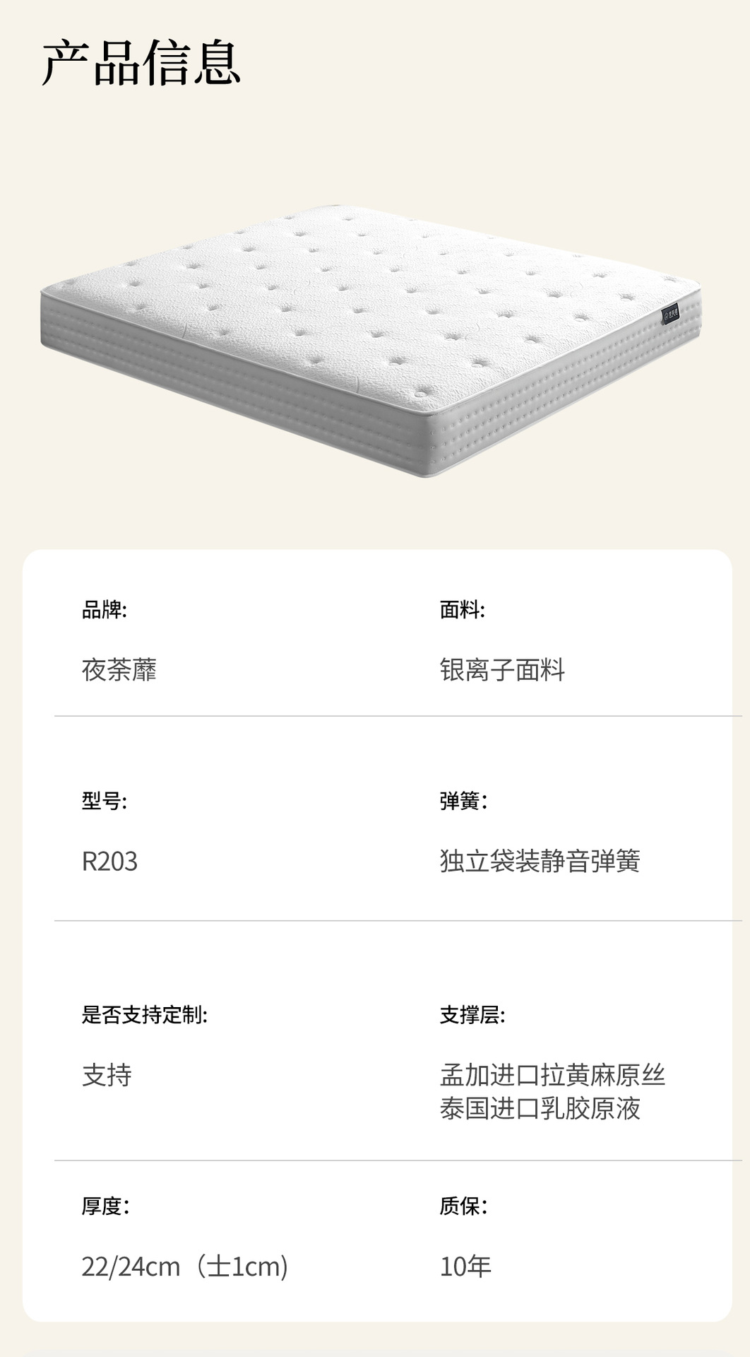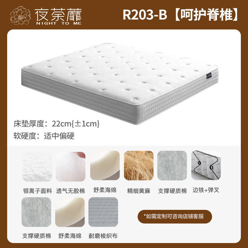 R203: [Мягкое и жесткое использование] Независимая карманная пружина + натуральный латекс + тонкий джут + дышащая губка + приятная для кожи ткань против клещей.; R203-B: [Односторонний, более жесткий] Независимая карманная пружина + тонкий джут + дышащая губка + приятная для кожи ткань против клещей.; R203-A: [Односторонний умеренный] Независимая карманная пружина + натуральный латекс + дышащая губка + приятная для кожи ткань против клещей