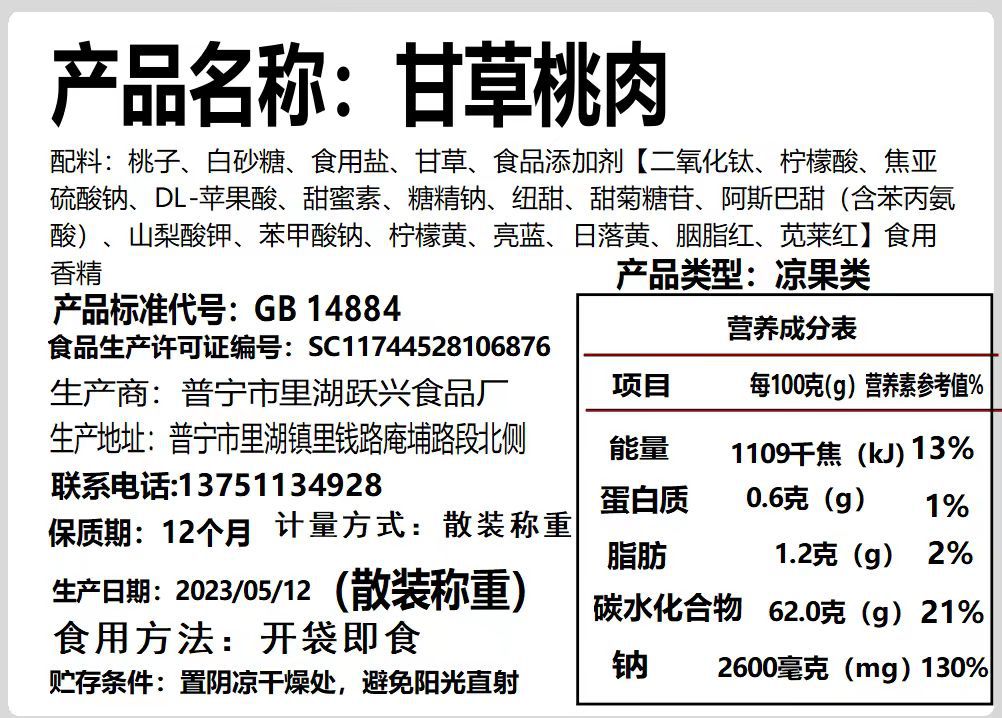 Специальность Ханчжоу солодка персика 20 г ванильных сушеных персиков