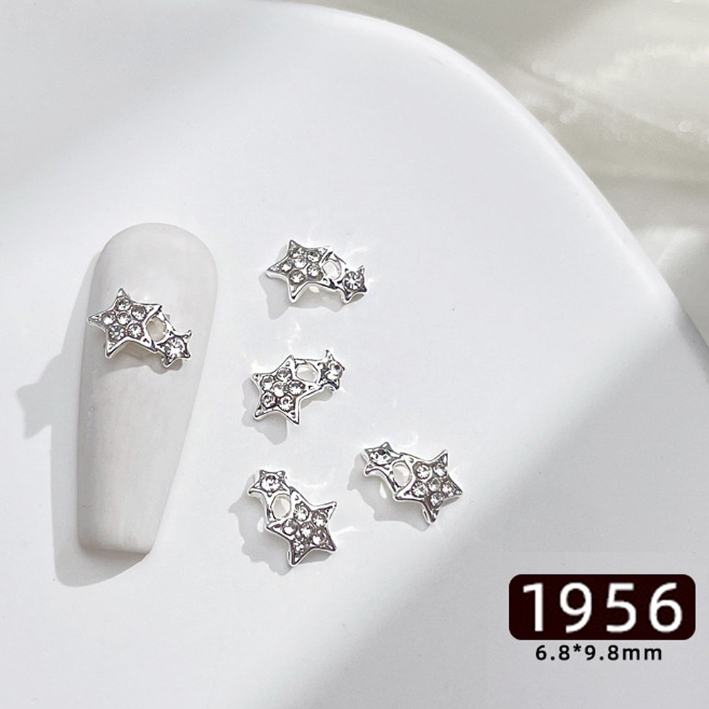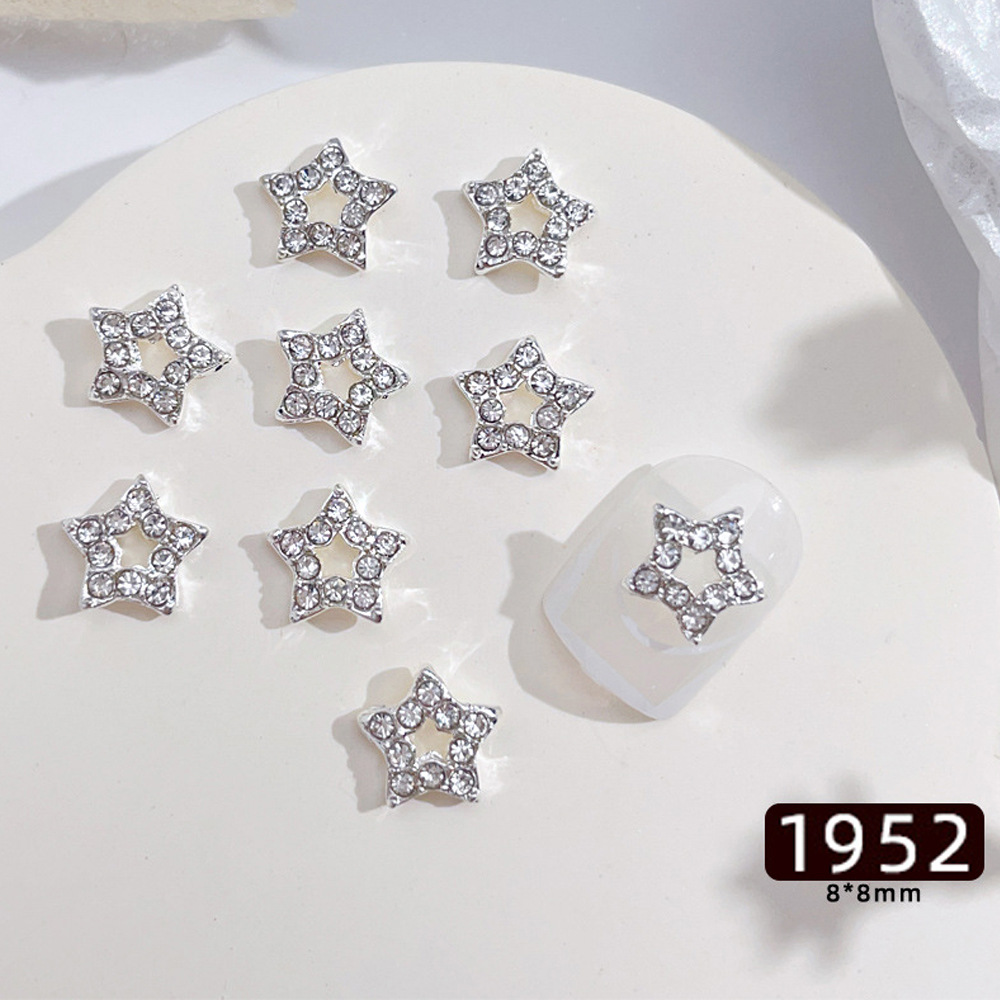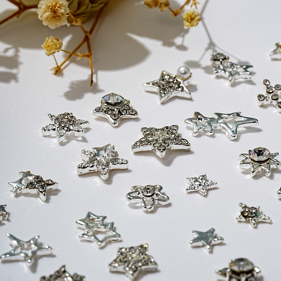Аксессуары для нейл-арта: металлические полые звезды с инкрустацией стразами, имитирующие взрывную звезду, для творчества и декора ногтей.
