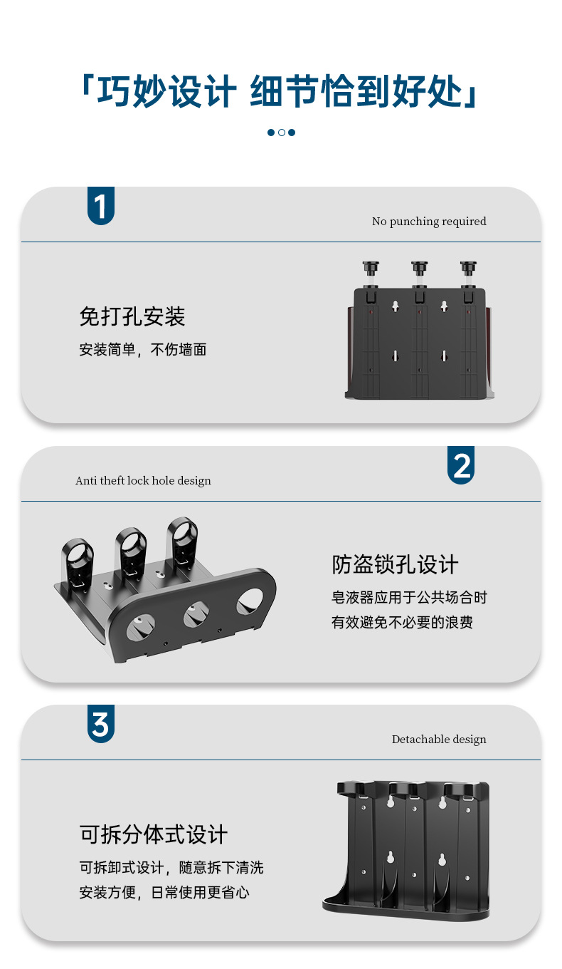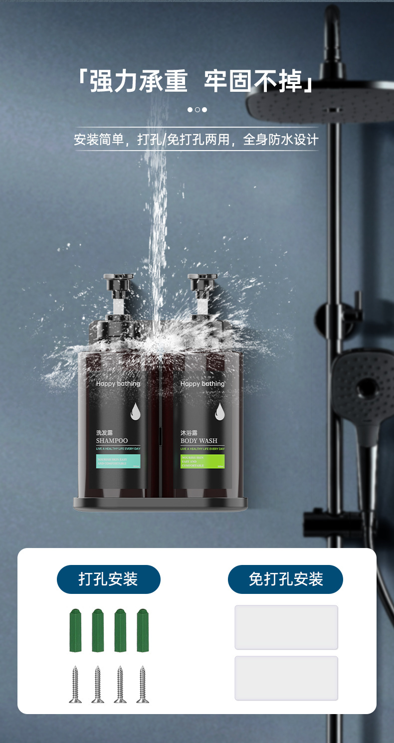 Настенный дозатор для мыла, геля для душа и шампуня без отверстий для ванной комнаты и кухни в гостинице