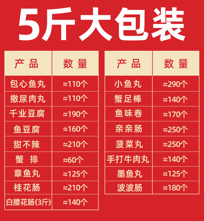 1 кг*10 пакетиков фрикаделек в горячей кастрюле 10kg [оптовая цена 1 коробка]; 2 коробки фрикаделек для горячего горшка, всего 20kg [82,8 юаней/коробка]; 3 коробки фрикаделек для горячего горшка, всего 30kg [81,8 юаней/коробка]; Всего 5 коробок фрикаделек для хот-пота 50kg [79,8 юаней/коробка]