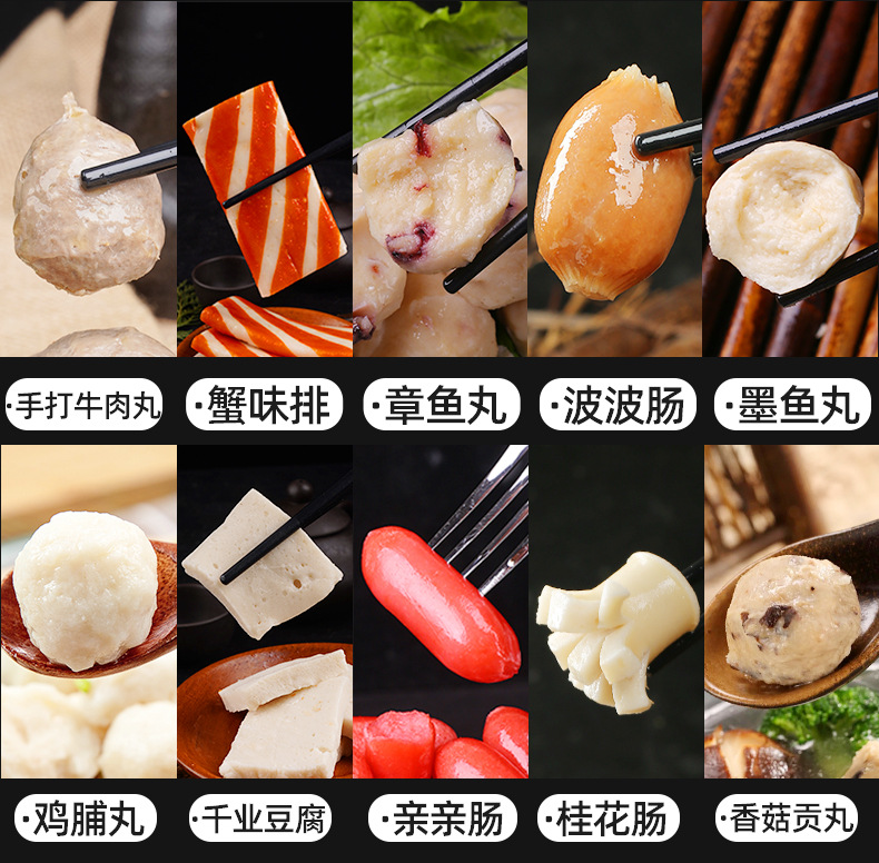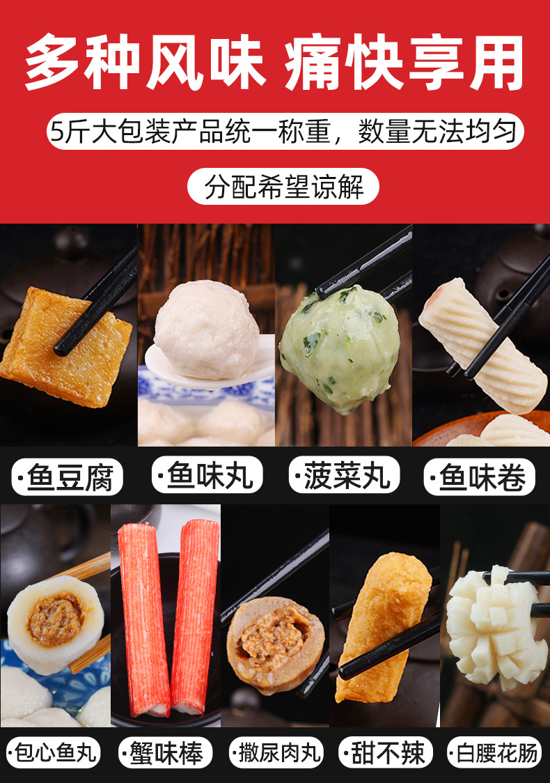 10kg Горячий горшок, фрикадельки, смешанные комбинированные говяжьи шарики, рыбные шарики, пряный горячий горшок, ингредиенты для оден, гарнир, коммерческая оптовая продажа