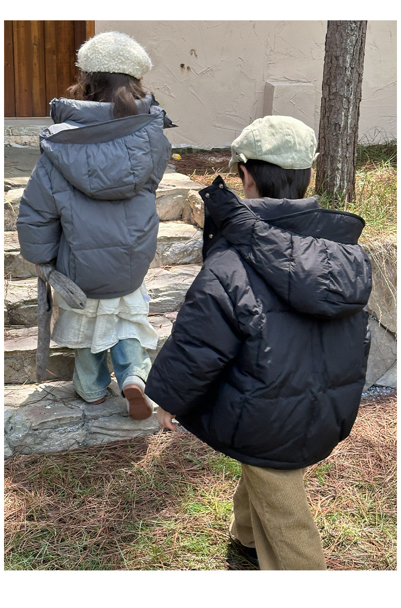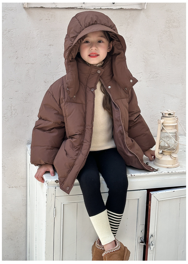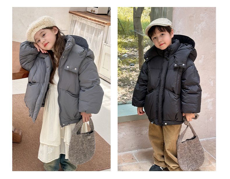 2025 детский новый зимний стиль, средний и большой детский пуховик для мальчиков и девочек, утолщенный теплый короткий стильный пуховик на белом утином пуху, модный