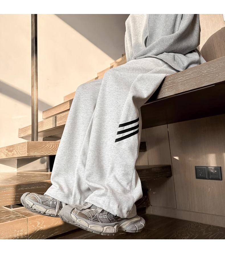 Американские тяжелые белые цветочные серые брюки мужские весенние и осенние трехполосные брюки для младших школьников длинные высокие парижские брюки