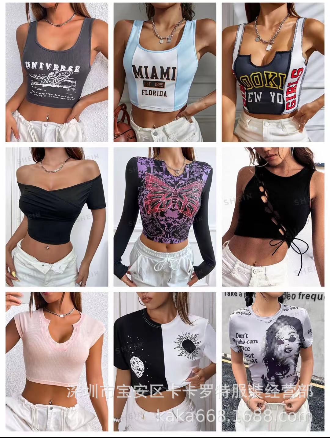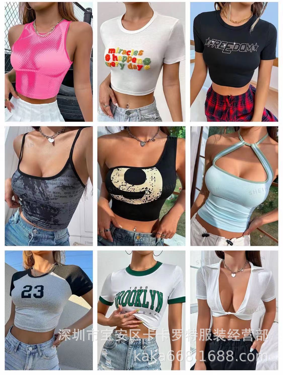 Новые европейские и американские сексуальные топы, одежда, сексуальный жилет, футболка, экспортная женская футболка SHEIN