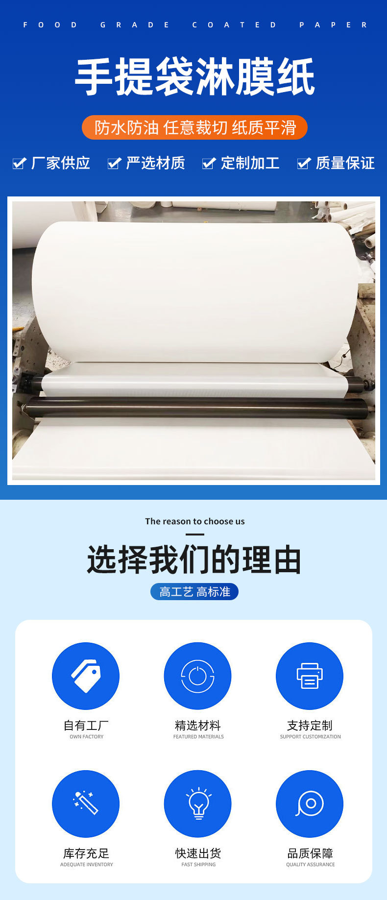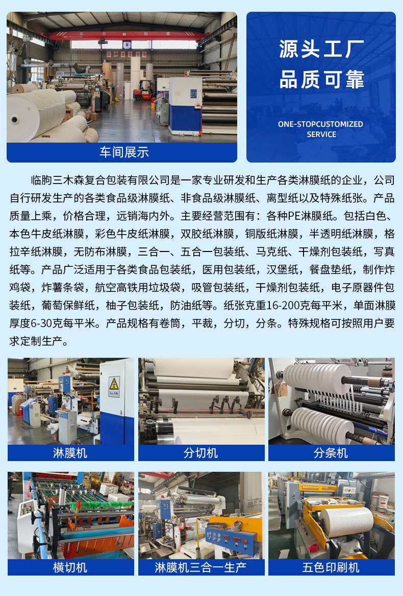 专业研发和生产:各类食品级淋膜纸、非食品级淋膜纸、离型纸以及特殊纸张。