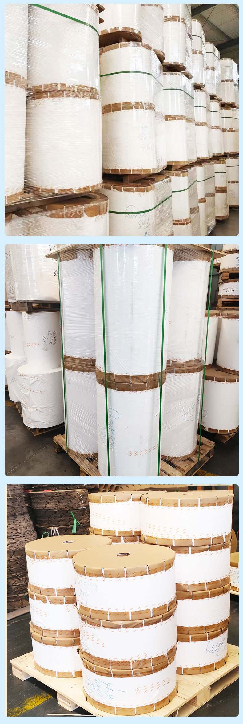 产品规格有卷筒,平裁,分切,分条等,