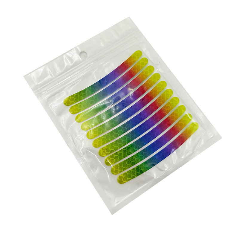 Светоотражающие наклейки на ступицу колеса автомобиля, предупреждающие наклейки на шины, радуга, персонализированные креативные мотоциклетные электромобили, серебряные наклейки, украшения