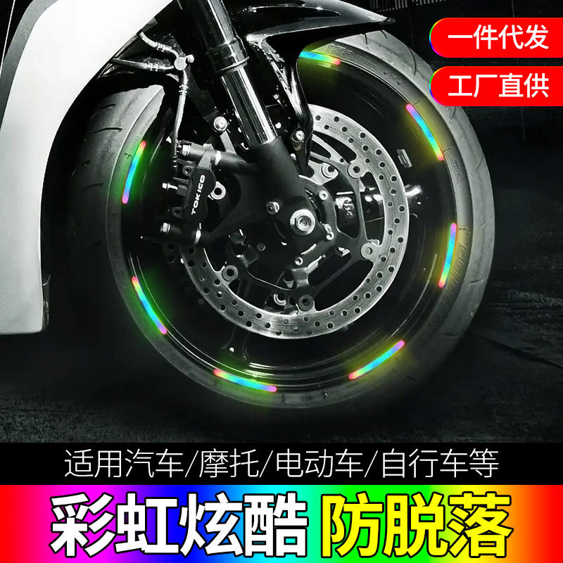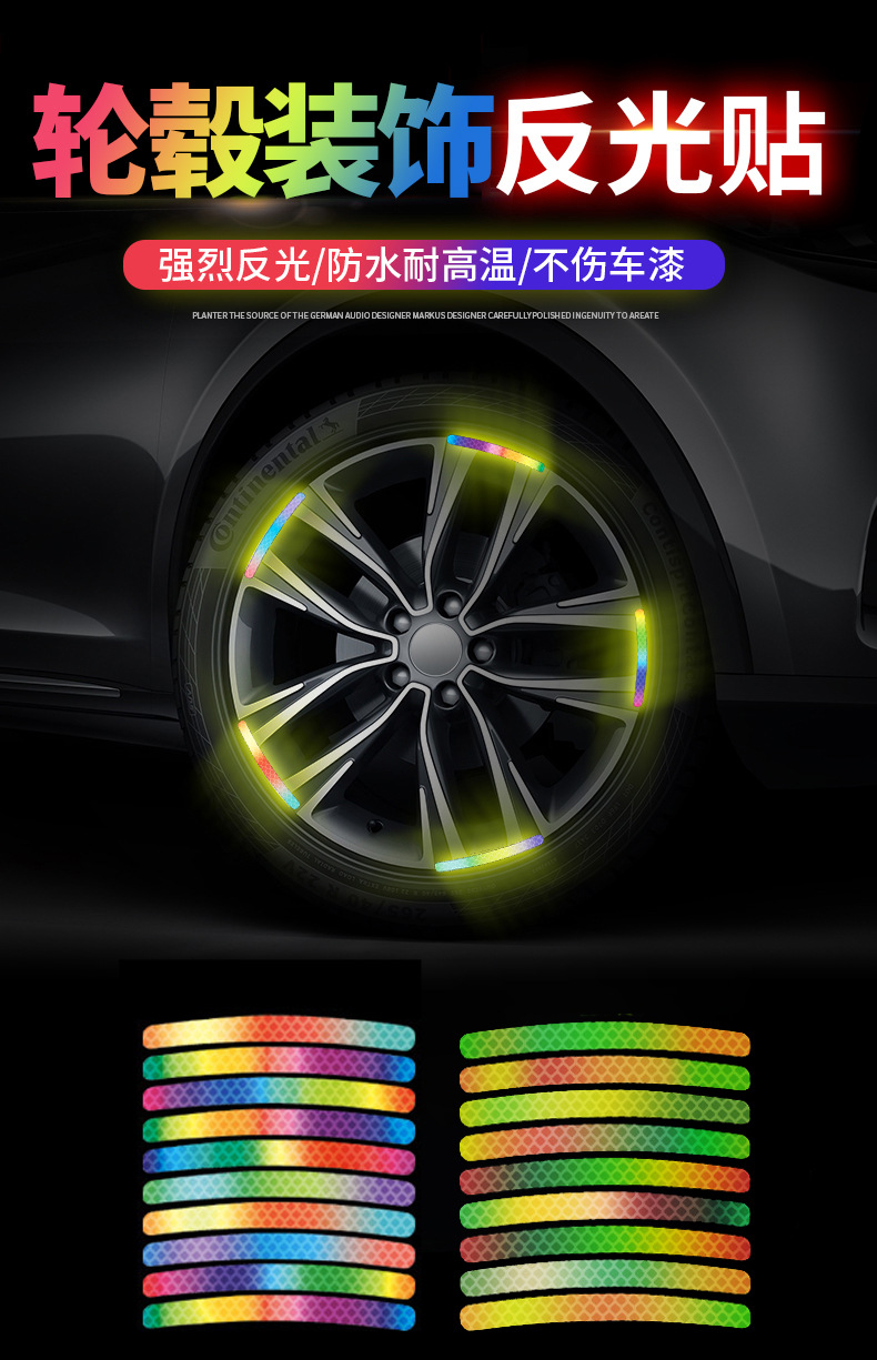 Мотоцикл, электромобиль, персонализированная индивидуальная ступица колеса, светоотражающая наклейка, автомобильная красочная лазерная светящаяся шина, наклейка против столкновений