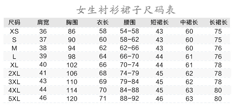 XS; S; M; L; XL; 2XL; 3XL; 4XL; 5XL; 6XL