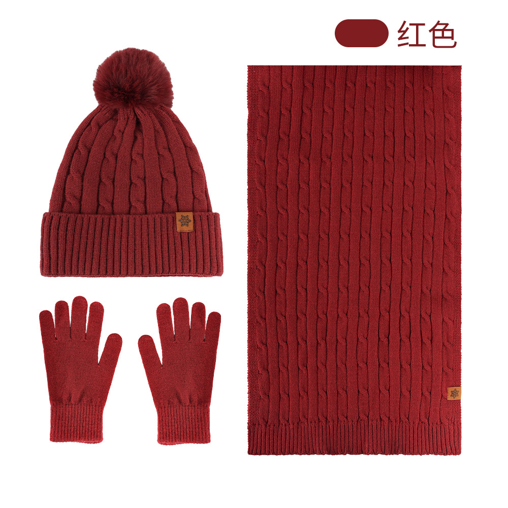 Женский зимний комплект из трикотажной шапки, шарфа и перчаток из двойного вельвета, утолщенный, теплый, шерстяной (3 предмета)