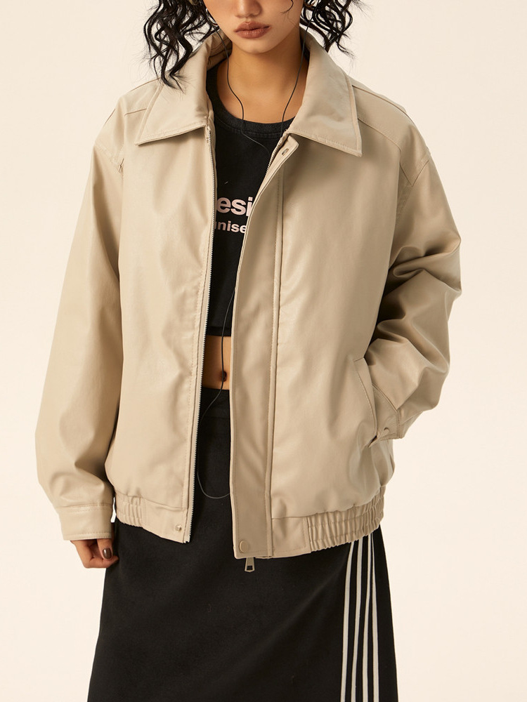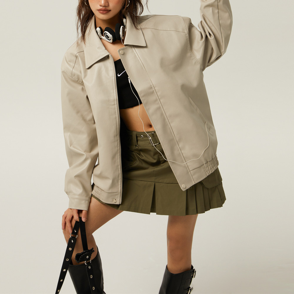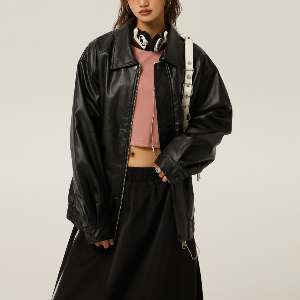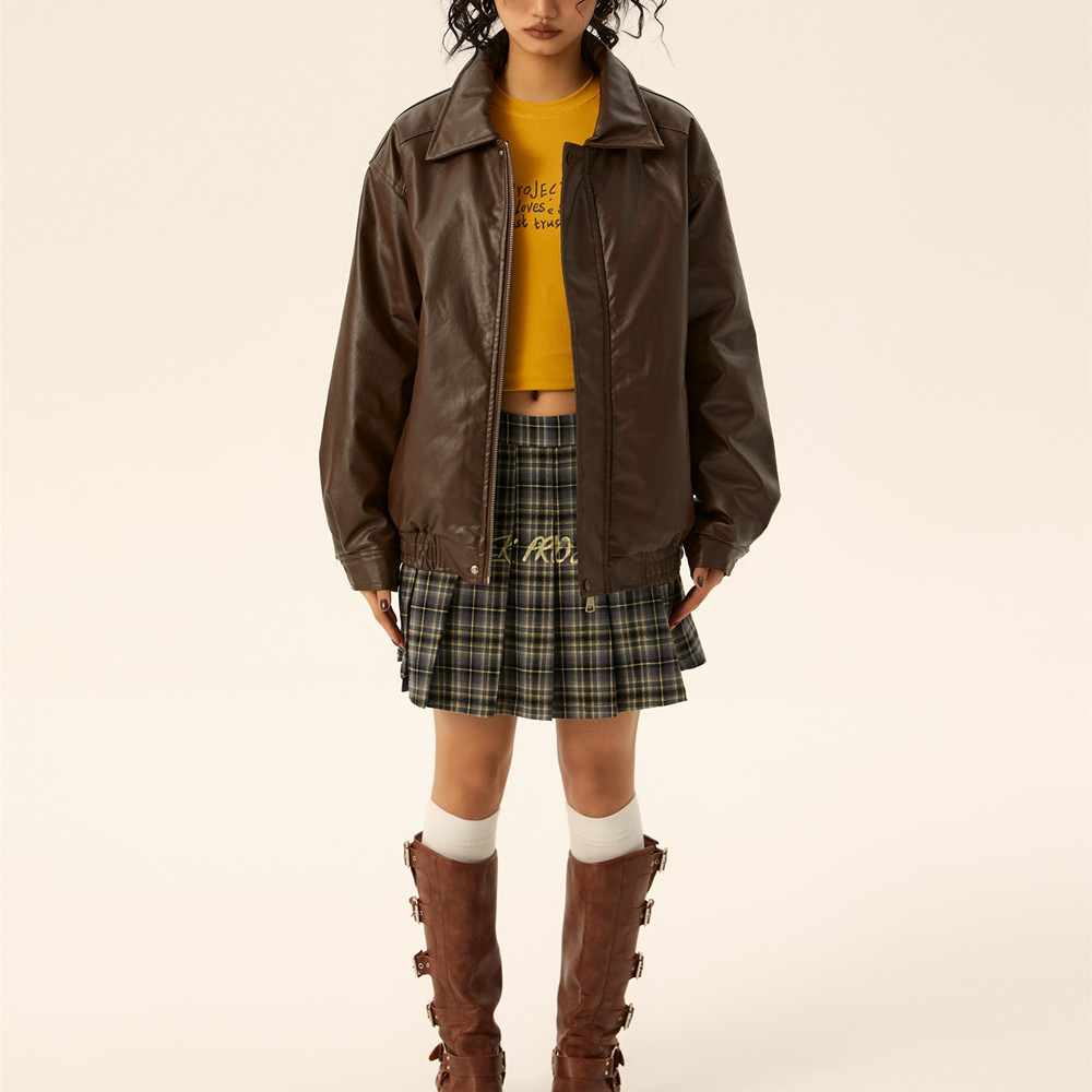 Майрад коричневый мотоциклетный кожаный пальто женский 2024 новый весенний и осенний американский ретро свободный повседневный pu куртка прилив