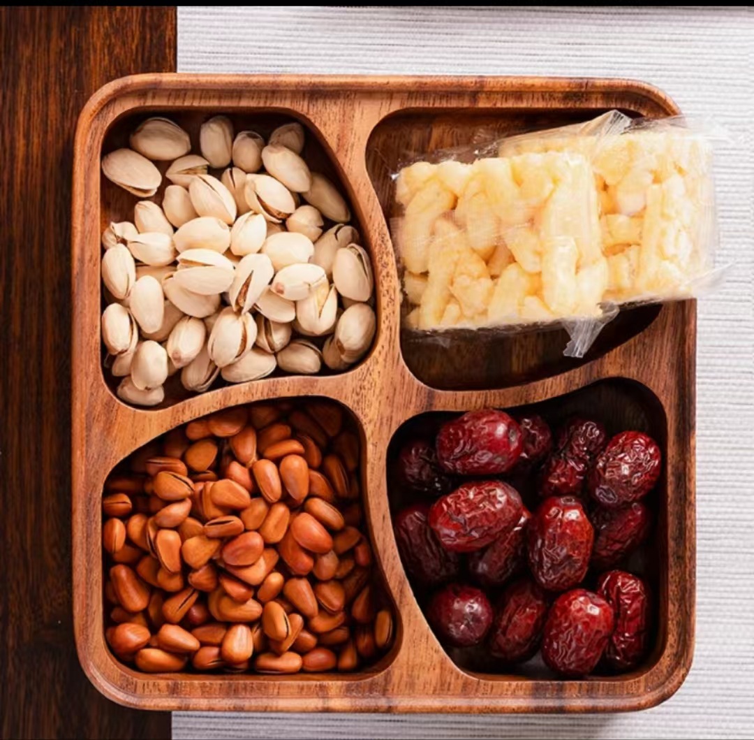 Блюдо с фруктами из орехового дерева с четырьмя сетками