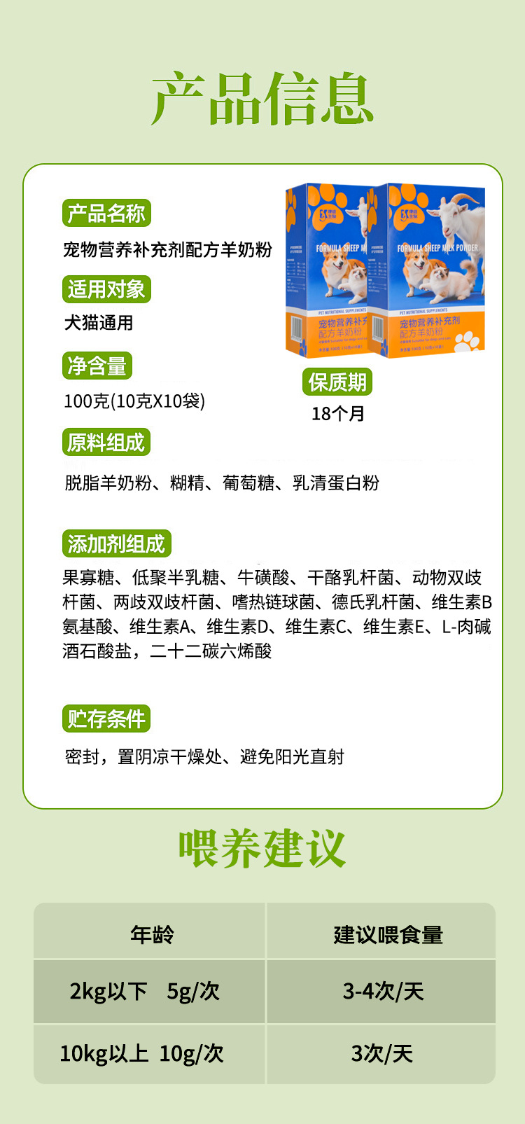 [Универсальный для кошек и собак] Козье молоко сухое 100г (10гх10 пакетиков)