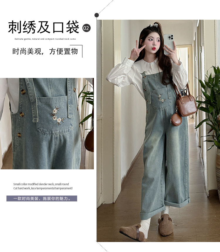 Джинсовый комбинезон для беременных, модный осенний новый стиль, корейская версия, с эффектом омоложения, с воротником-стойкой, свободные повседневные брюки с широкими штанинами