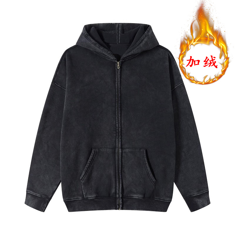 YQ27 стираная черная толстовка на молнии тонкого стиля; YQ27 стираная черная толстовка на молнии плюс бархат