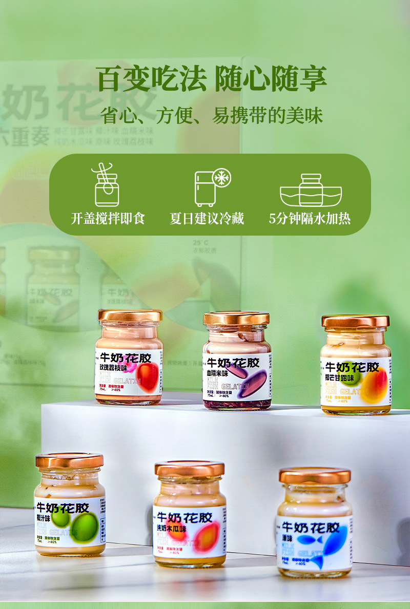 Оригинальная резинка с молочным цветком.; Кровавая клейкая резинка с молочными цветами и ароматизацией риса; Резинка с молочным цветком и ароматизацией розового личи; Чистое молоко с ароматом папайи и рыбьей пастилкой; Цветочная резинка из кокосового молока; Молочная цветочная резинка со вкусом нектара кокосовой пальмы; Молочная резинка-шесть вкусов смешанных