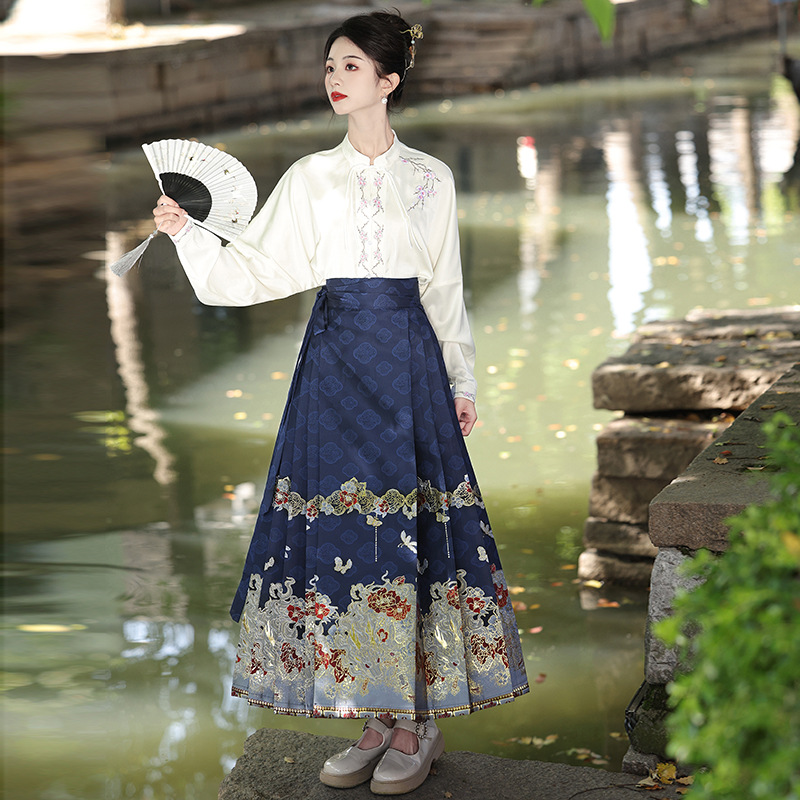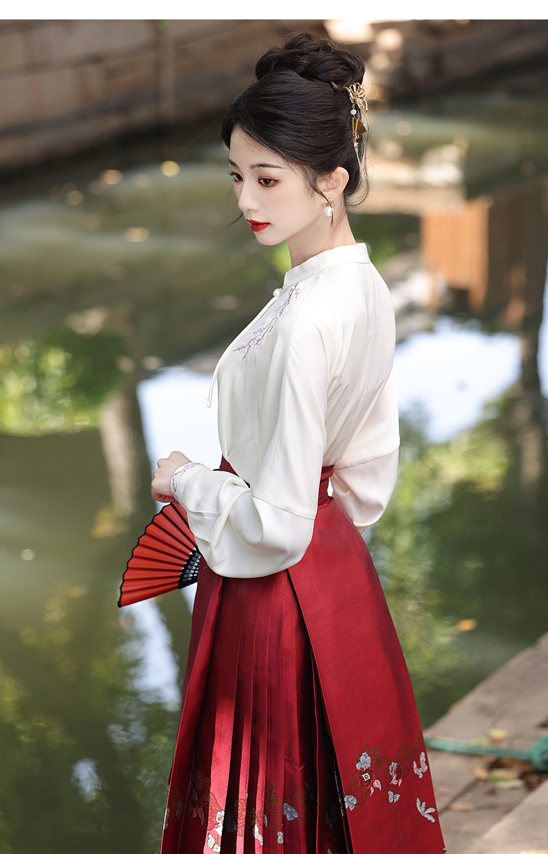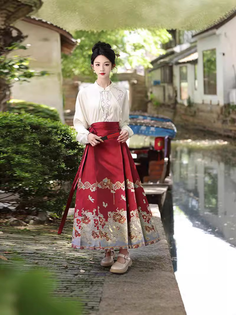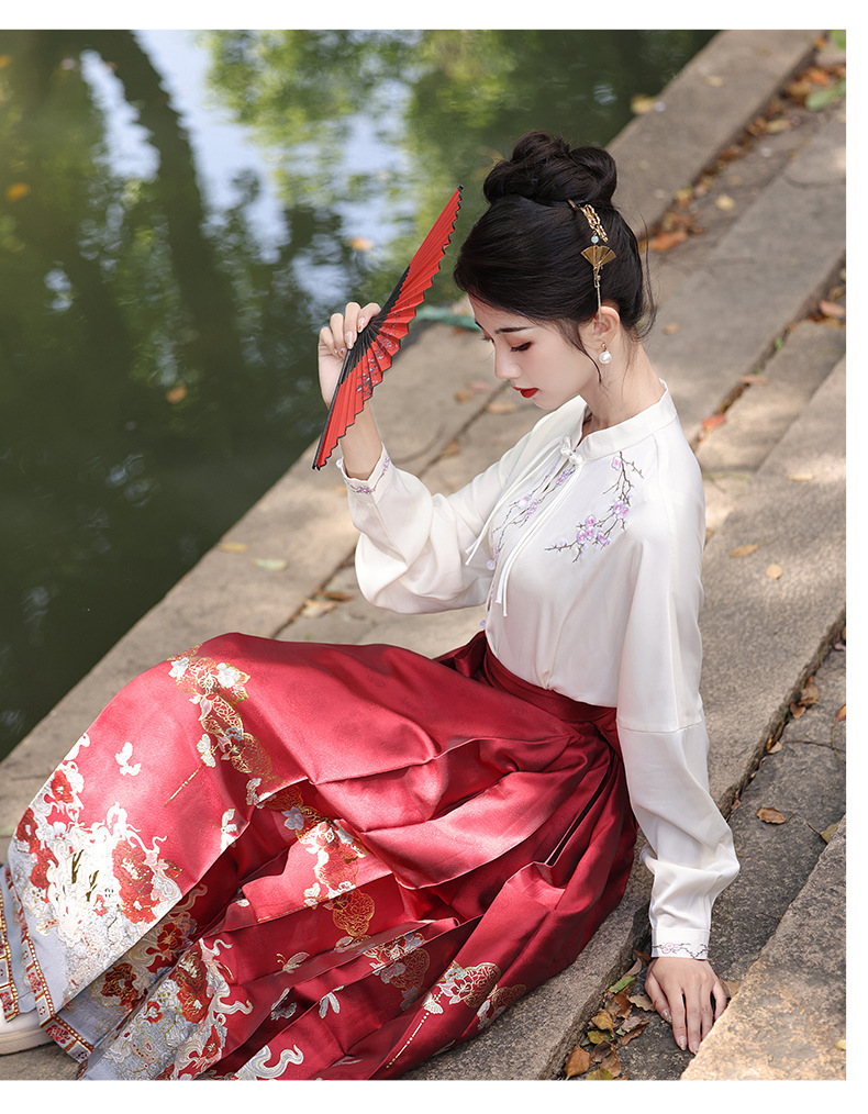 Новинка 2025: Комплект женской одежды в китайском стиле Ханьфу (Минский стиль) с вышивкой, цветочным узором и золотыми элементами, включая юбку «мамянь», для помолвки, красный