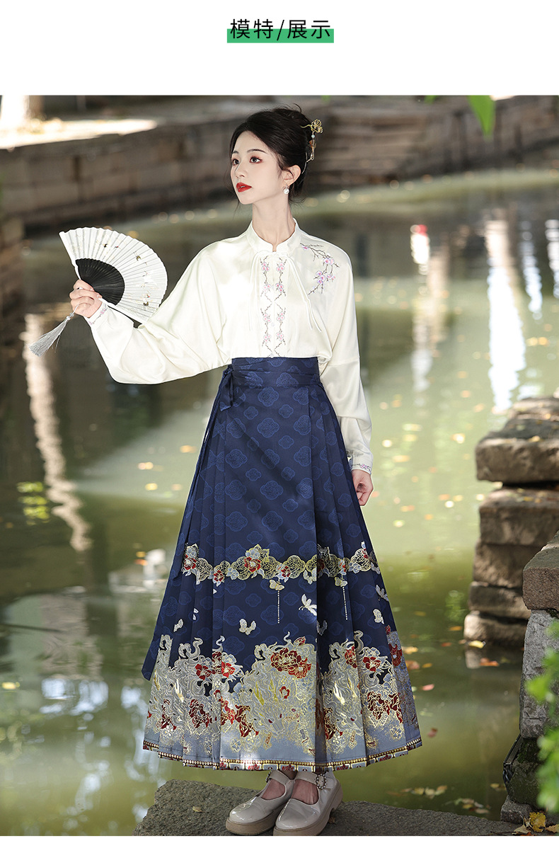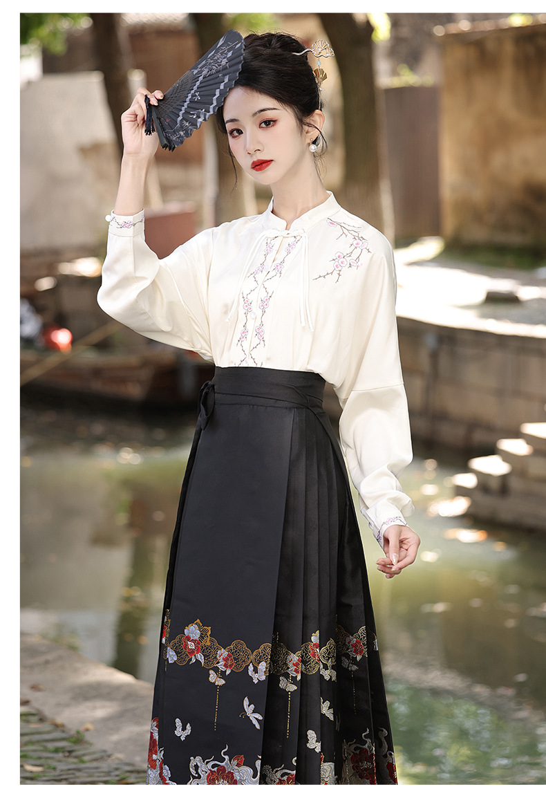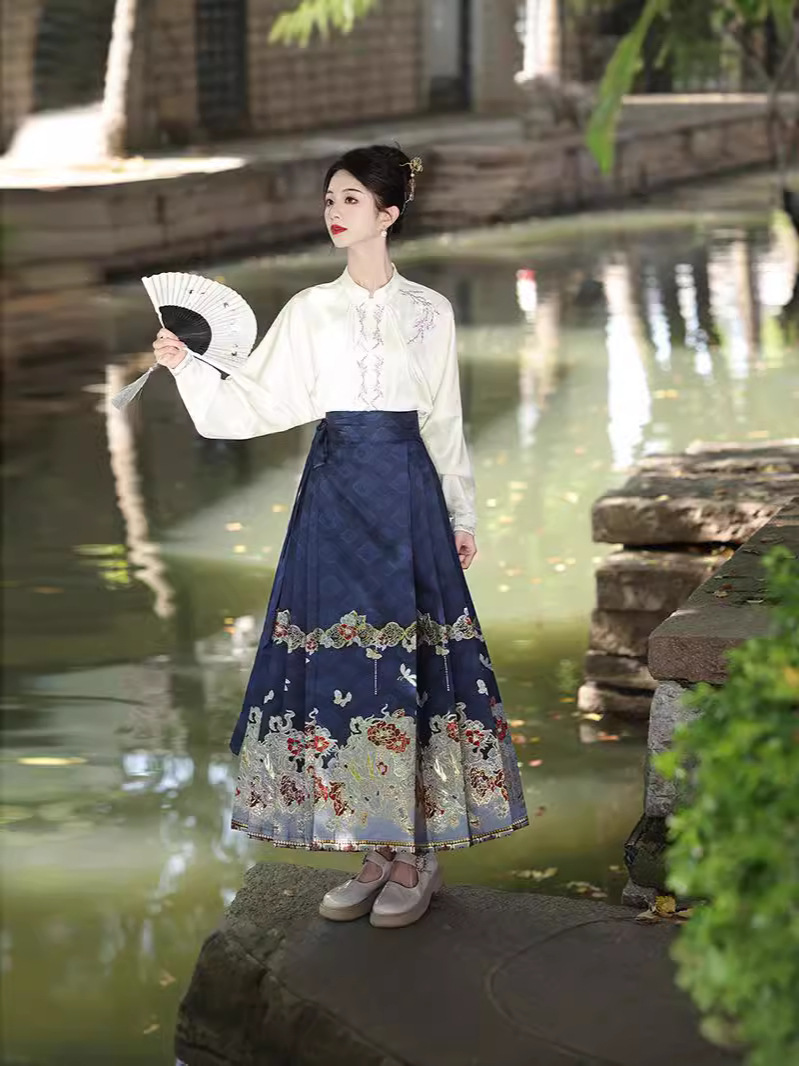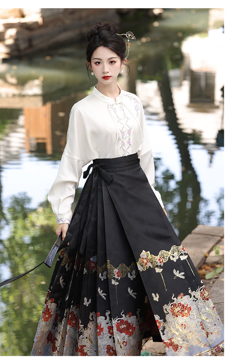 Новинка 2025: Комплект женской одежды в китайском стиле Ханьфу (Минский стиль) с вышивкой, цветочным узором и золотыми элементами, включая юбку «мамянь», для помолвки, красный