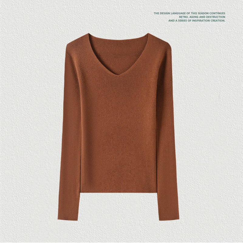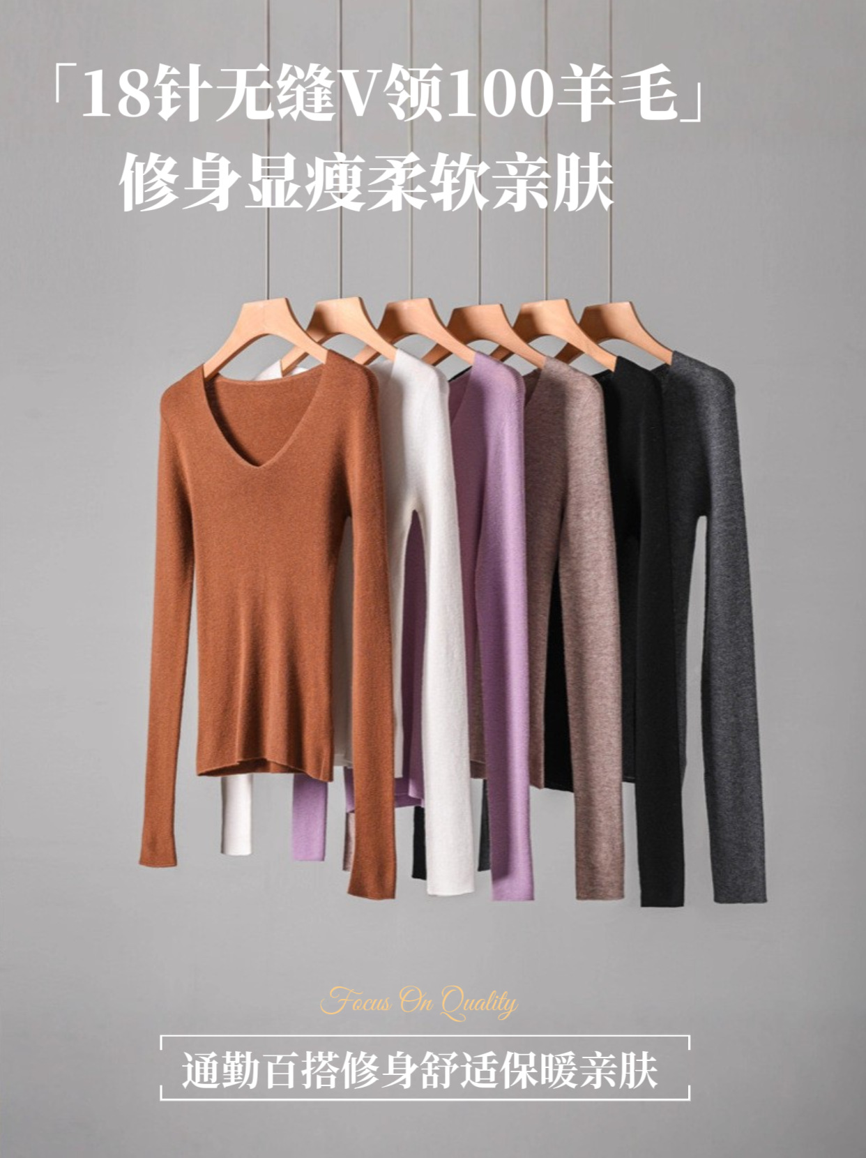 Yangzi Sashima эссенция 18 игл бесшовный V-образный вырез 100 шерстяной трикотаж женский тонкий базовый свитер