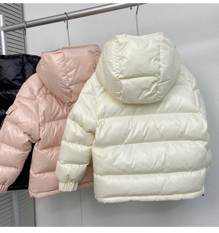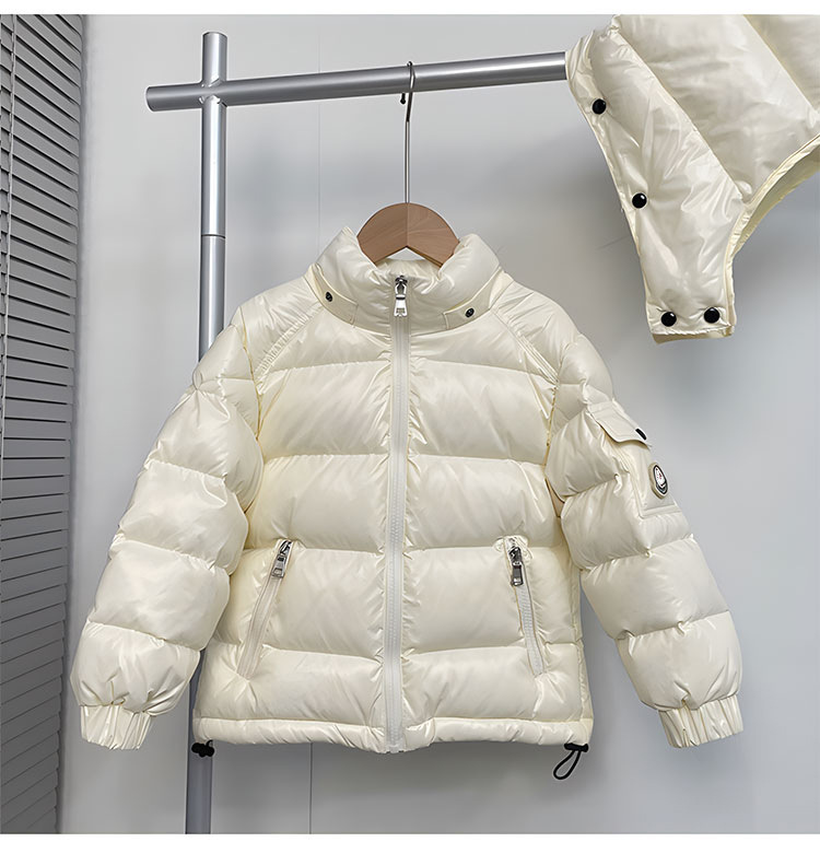 Детская короткая пуховая куртка, аналогичная бренду M, зимняя утепленная, для мальчиков и девочек, среднего и большого размера, теплая, трехслойная, с блестящей поверхностью, модное пальто.