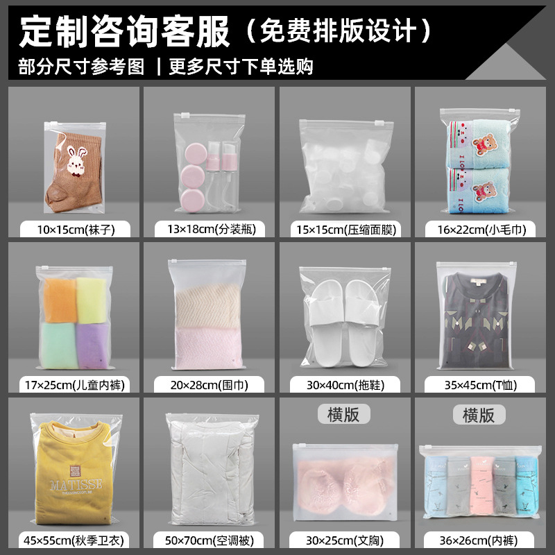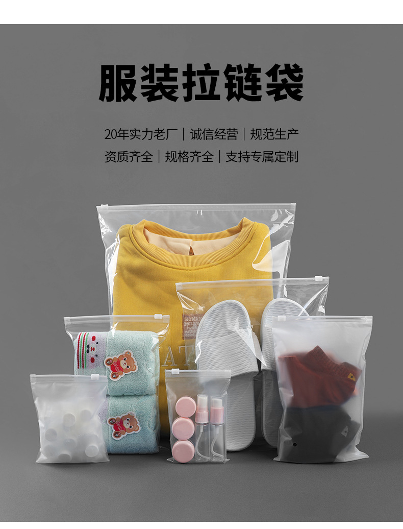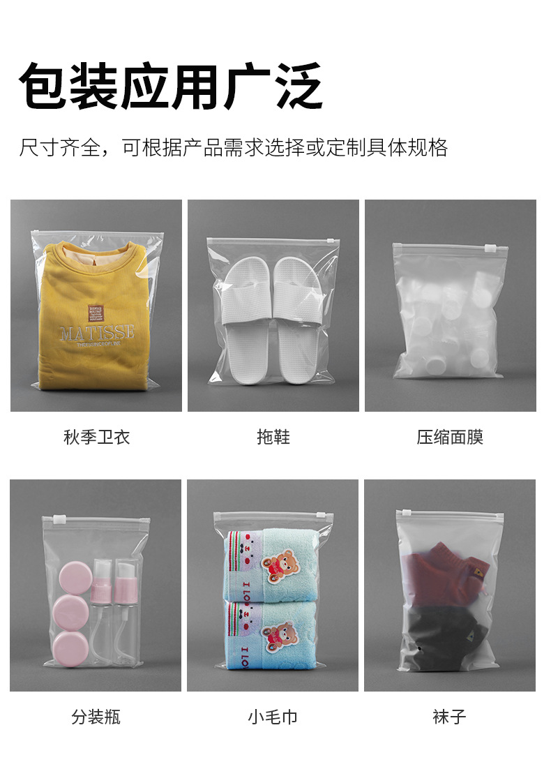 Оптовые продажи полиэтиленовых пакетов с застежкой-молнией, матовых пакетов для упаковки одежды, прозрачных пакетов для упаковки нижнего белья, носков, полотенец и одежды с короткими рукавами.