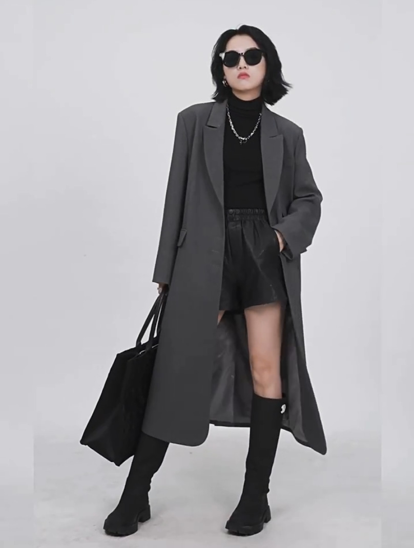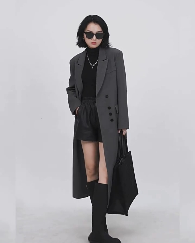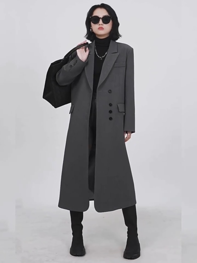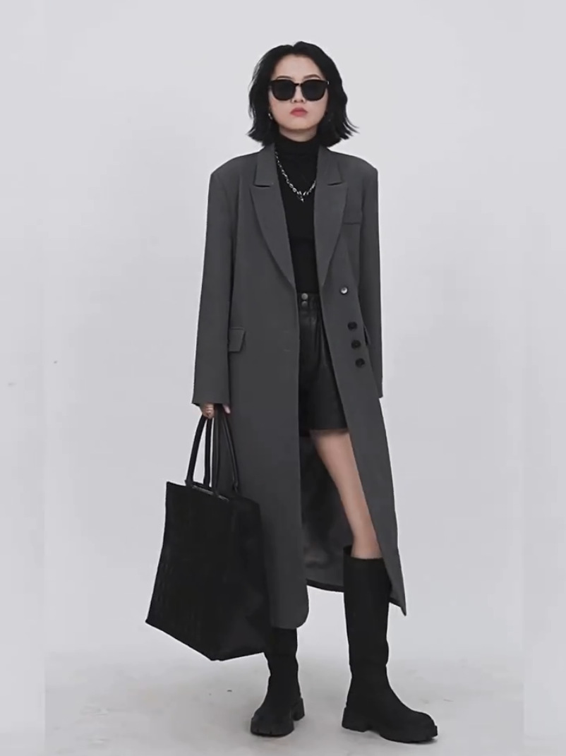 [Спотовая подвеска] 9056 Весна и Осень слегка толстый мм большой размер женский костюм плеча с воротником ветровка средней и длинной куртки