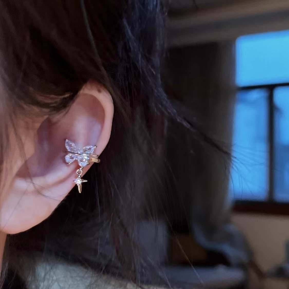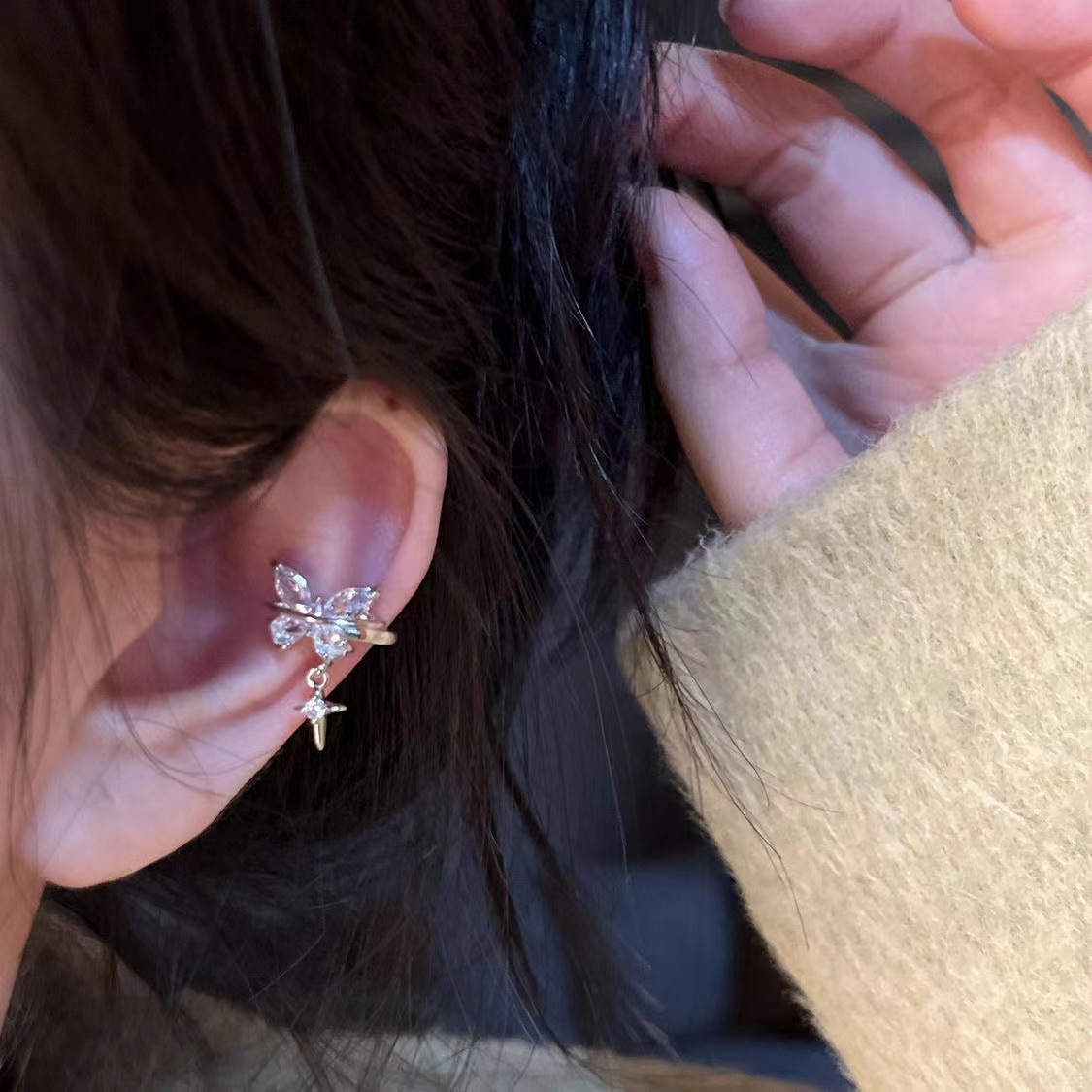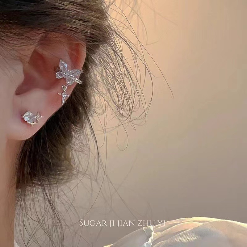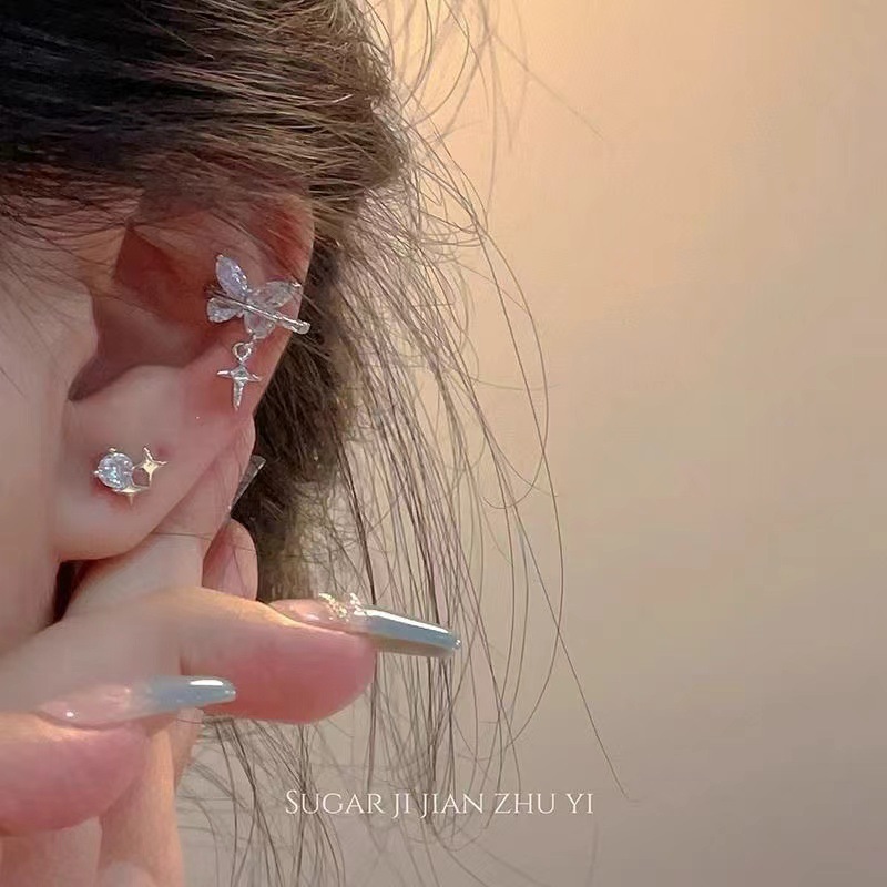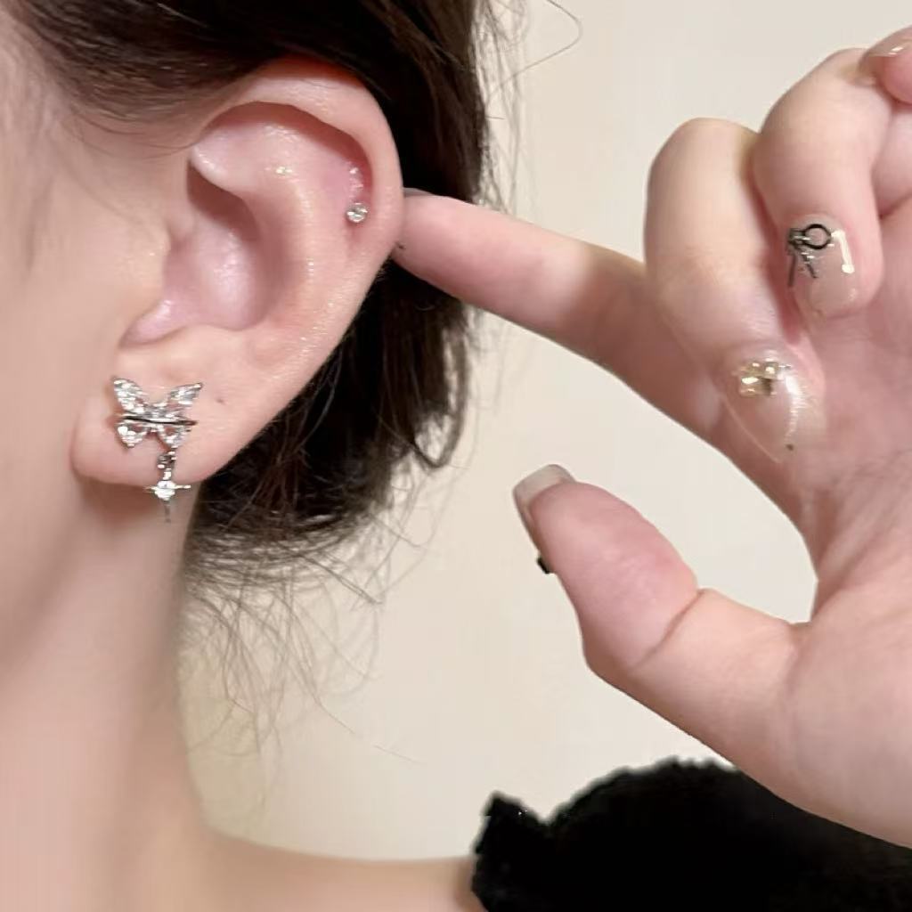 Чисто желание 2024 модный циркон подвеска бабочка ушная кость новая нишевые проколоты ушные зажимы дизайн газовой текстуры ушей