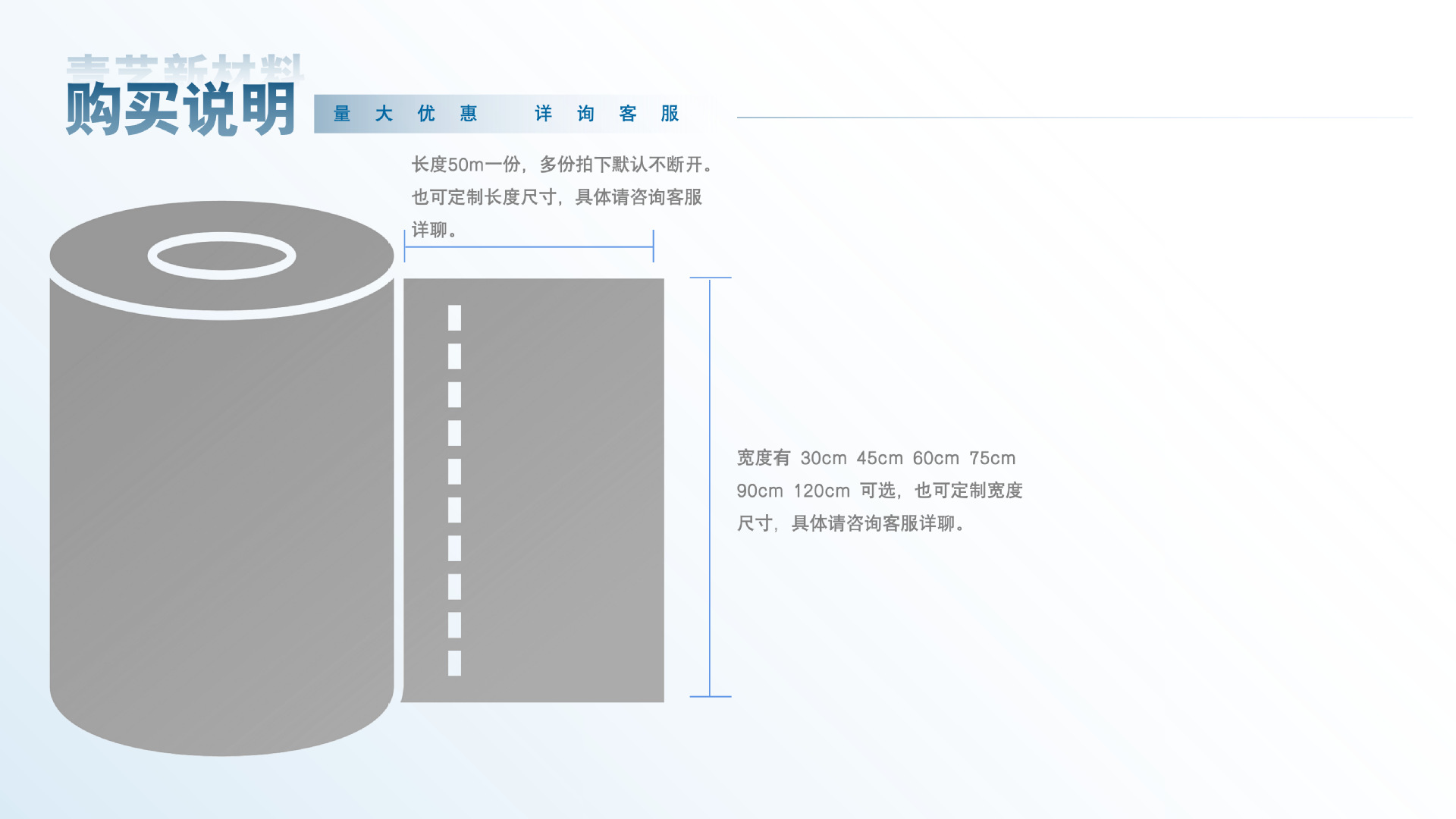 45cm*1m; 60cm*1m; 75*1m; 90cm*1m; 120cm*1m