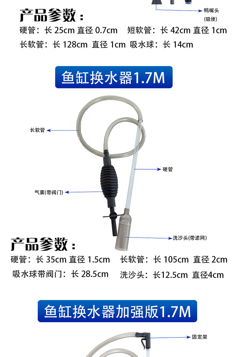 1.5m сменщик воды в аквариуме; 1.5m водообменник с плоским горлышком; Сменщик воды в аквариуме 1.7m; Обменник воды для аквариума 1.7m синий; Аквариумный обменник воды 1.7m - Улучшенный синий; Сменщик воды в аквариуме 1.7m усиленный; Сменщик воды в мини-аквариуме 1.9m; Сменщик воды в мини-аквариуме 1.9m новый красный; Сменщик воды в мини-аквариуме 1.9m новый синий; Сменщик воды в мини-аквариуме 2.2m; Сменщик воды в мини-аквариуме 2.2m новый красный; Сменщик воды в мини-аквариуме 2.2m новый синий цвет; Утолщенный сменник воды в аквариуме 2.6m серый; Утолщенный сменщик воды в аквариуме 2.6m синий; Утолщенный сменщик воды в аквариуме 2.6m новый стиль; Утолщенный сменник воды в аквариуме 3m серый; Утолщенный сменщик воды в аквариуме 3m синий; Утолщенный сменщик воды в аквариуме 3m новый стиль; Хомут для водопровода; 1.9m Мини Серый (с пескоструйной установкой); 1.9m Mini Red (с пескоструйной установкой); 1.9m Mini Green (с пескоструйной установкой); 1.9m Mini Blue (с пескоструйной мойкой); 3m простое украшение