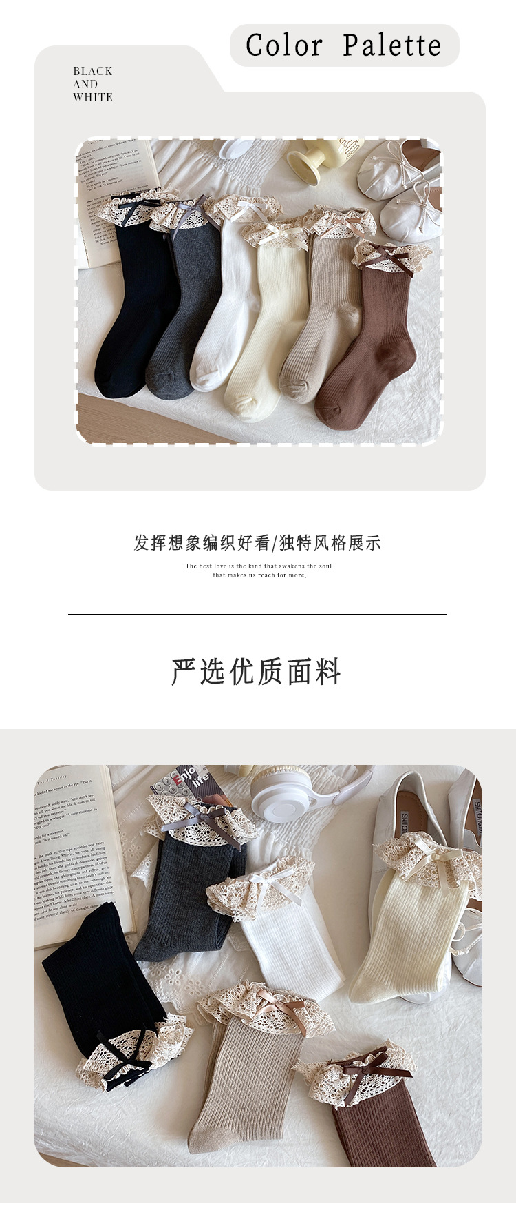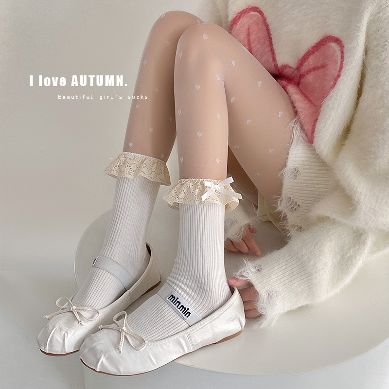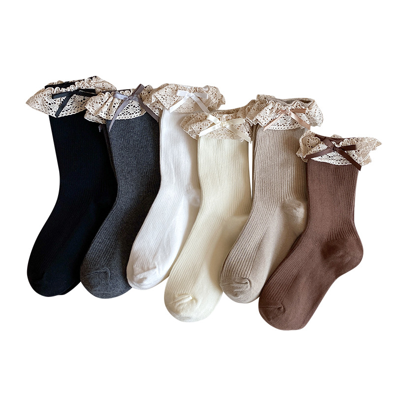 Носки женские трубочные хлопчатобумажные носки весной и осенью цвет карри лук милый японский ретро ткань кружева осенние и зимние чулки