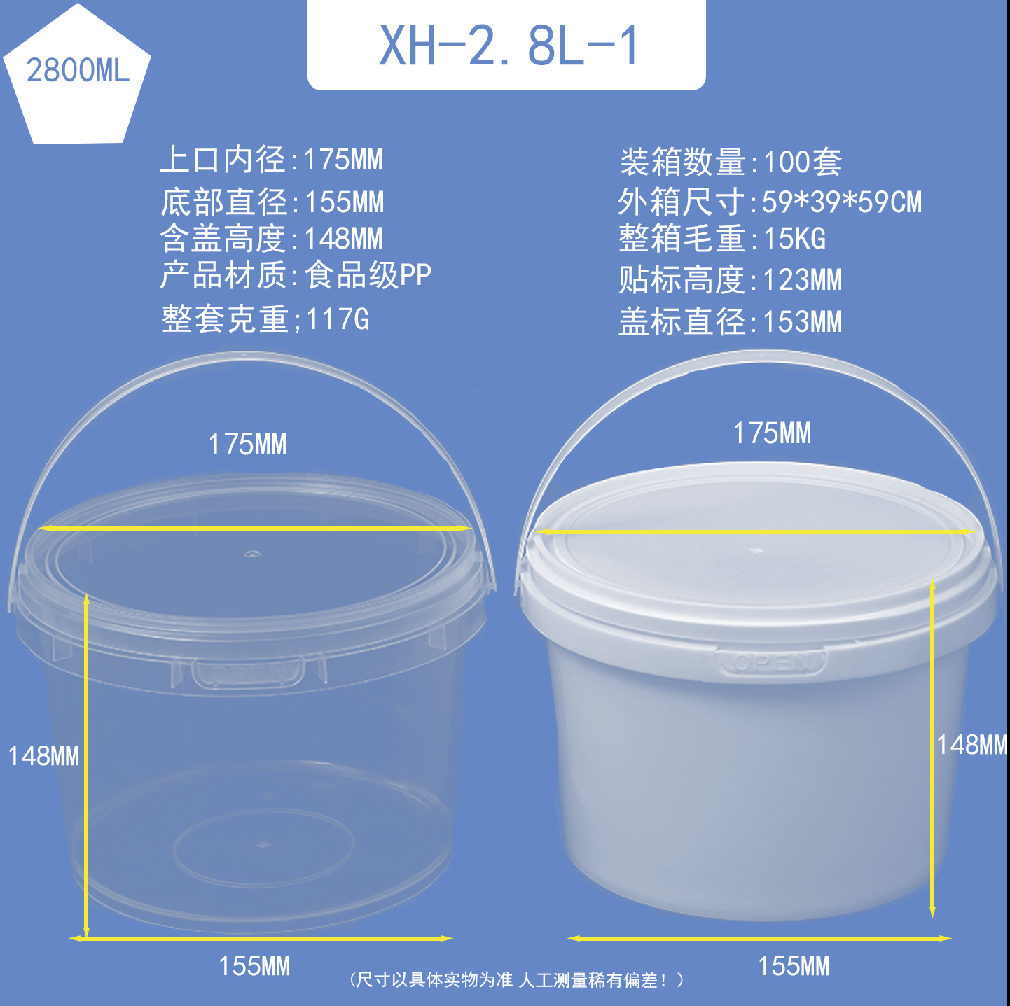 0,15 литра (прозрачный без ручки); 0,3 литра (прозрачный); 0,5 литра (прозрачный); 0,75 литра (прозрачный); 1 литр (прозрачный); 1,2 литра (прозрачный); 1,5 литра (прозрачный); 1,8 литра (прозрачный); 2 литра (прозрачный); 2,2 литра (прозрачный); 2.2L; Модель высотой 2,5 литра (прозрачная); Короткая модель 2,5 л (прозрачная); 2,8 л (прозрачный); 3 литра (прозрачный); 3,5 л (прозрачный); 4 литра (прозрачный); 5 литров (прозрачный); 6 литров (прозрачный); 6л новый стиль (прозрачный); Квадратное ведро 6 л (прозрачное); 7,5 л (прозрачный); 8,5 л (прозрачный); 10л (прозрачный); 0,15 литра (белый без ручки); 0,3 литра (белый); 0,5 литра (белый); 0,75 литра (белый); 1 литр (белый); 1,2 литра (белый); 1,5 литра (белый); 1,8 литра (белый); 2 литра (белый); 2,2 литра (белый); Модель высотой 2,5 литра (белая); Короткая модель 2,5 л (белая); 2,8 л (белый); 3 литра (белый); 3,5 л (белый); 4 литра (белый); 5 литров (белый); 5л (прозрачный круглый, утолщенный); 6 литров (белый); Новая модель 6л (белый); Квадратное ведро 6 л (белое); 7,5 л (белый); 8,5 л (белый); 10л (белый); 0,5л (прозрачный круглый, утолщенный); 1л (прозрачный круглый, утолщенный); 2 литра (прозрачный ствол утолщенный); 3л (прозрачный круглый, утолщенный); 4л (прозрачный круглый, утолщенный)