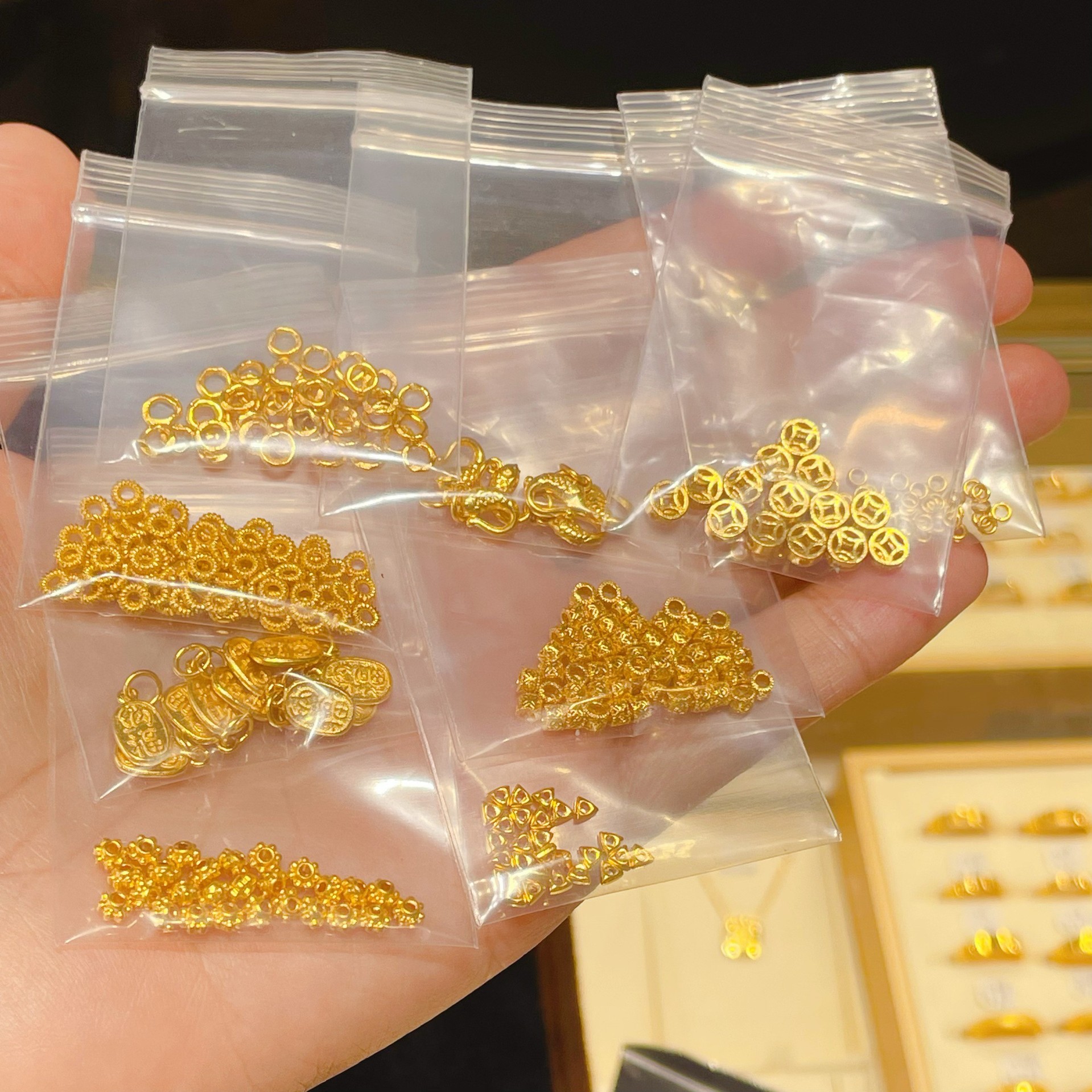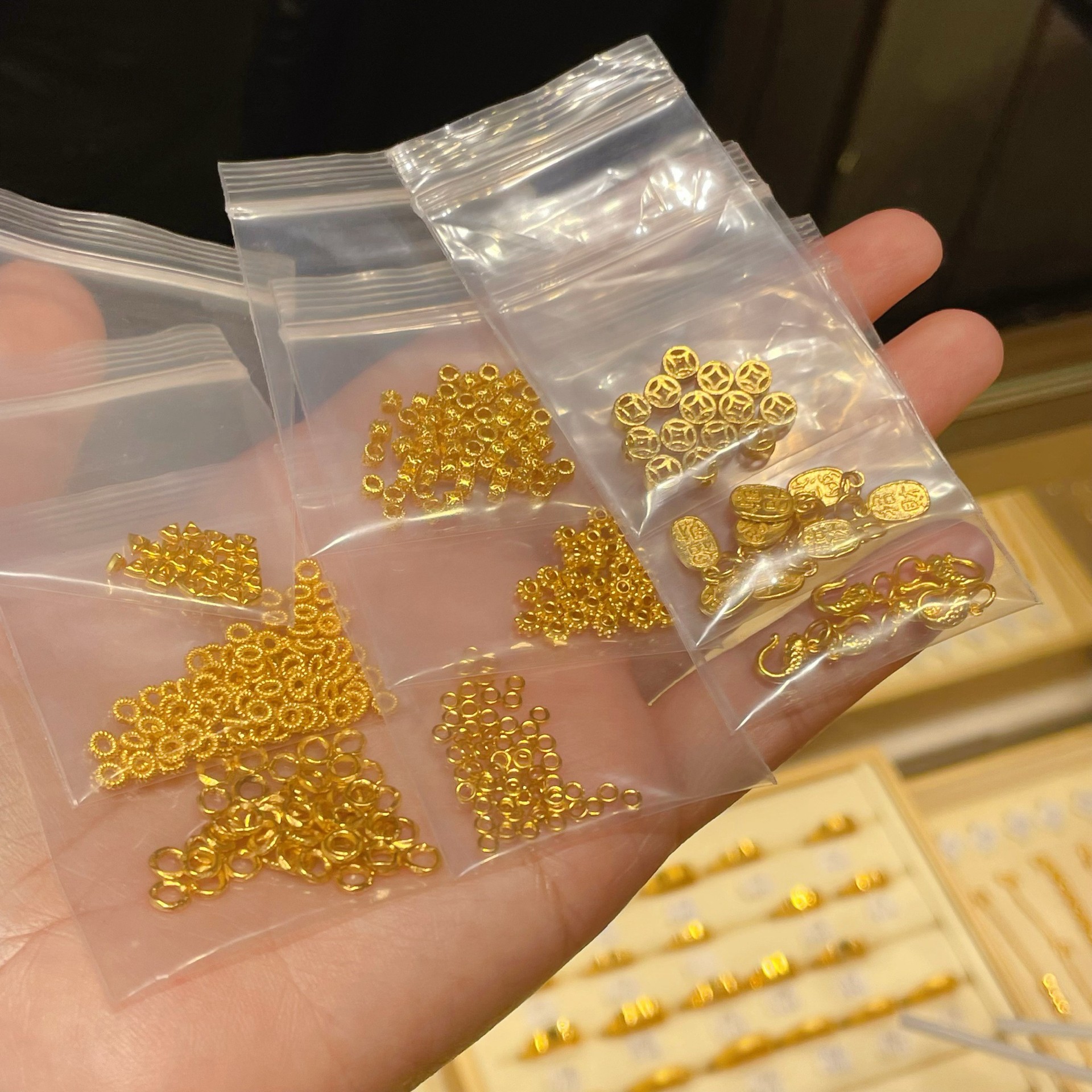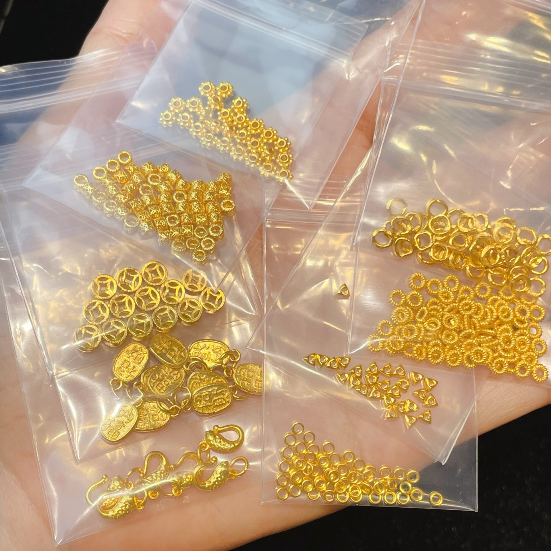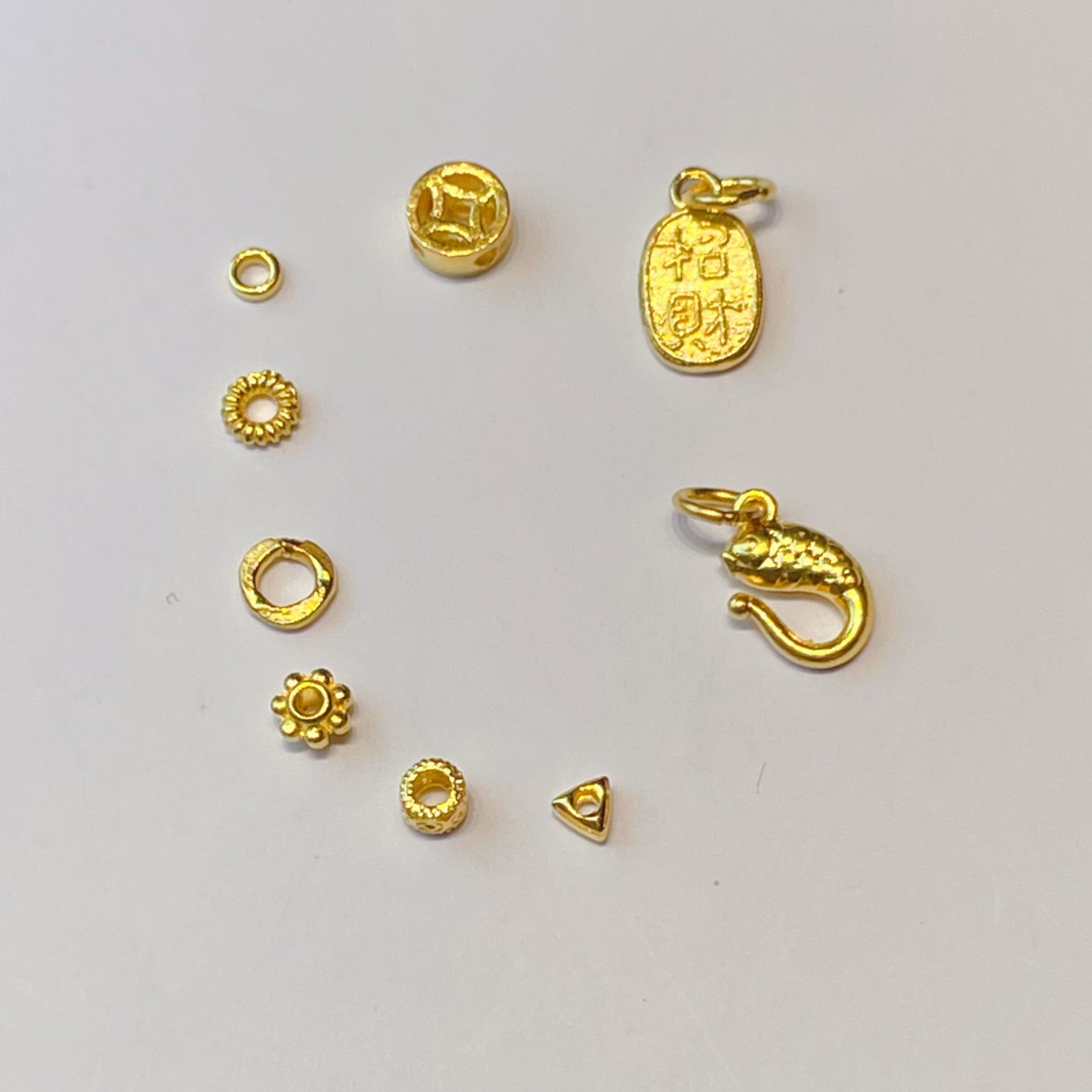 7 ли спиралей составляет около 0,07 грамма.; Рыбная пряжка около 0,68 грамма.; Счастливчик и Счастливчик (положительный и отрицательный) составляет около 0,48 грамма.; Монета весит около 0,33 грамма.; Круг нити составляет около 0,1 грамма.; Вырезанные медные монеты имеют вес около 0,15 грамма.; Проставка колеса составляет около 0,2 грамма.; Треугольный золотой самородок весит около 0,08 грамма.; Маленький золотой круг весит около 0,05 грамма.; Примерно 0,05 грамма катушки длиной 5 миль.; Примерно 0,04 грамма катушки длиной 4 мили.