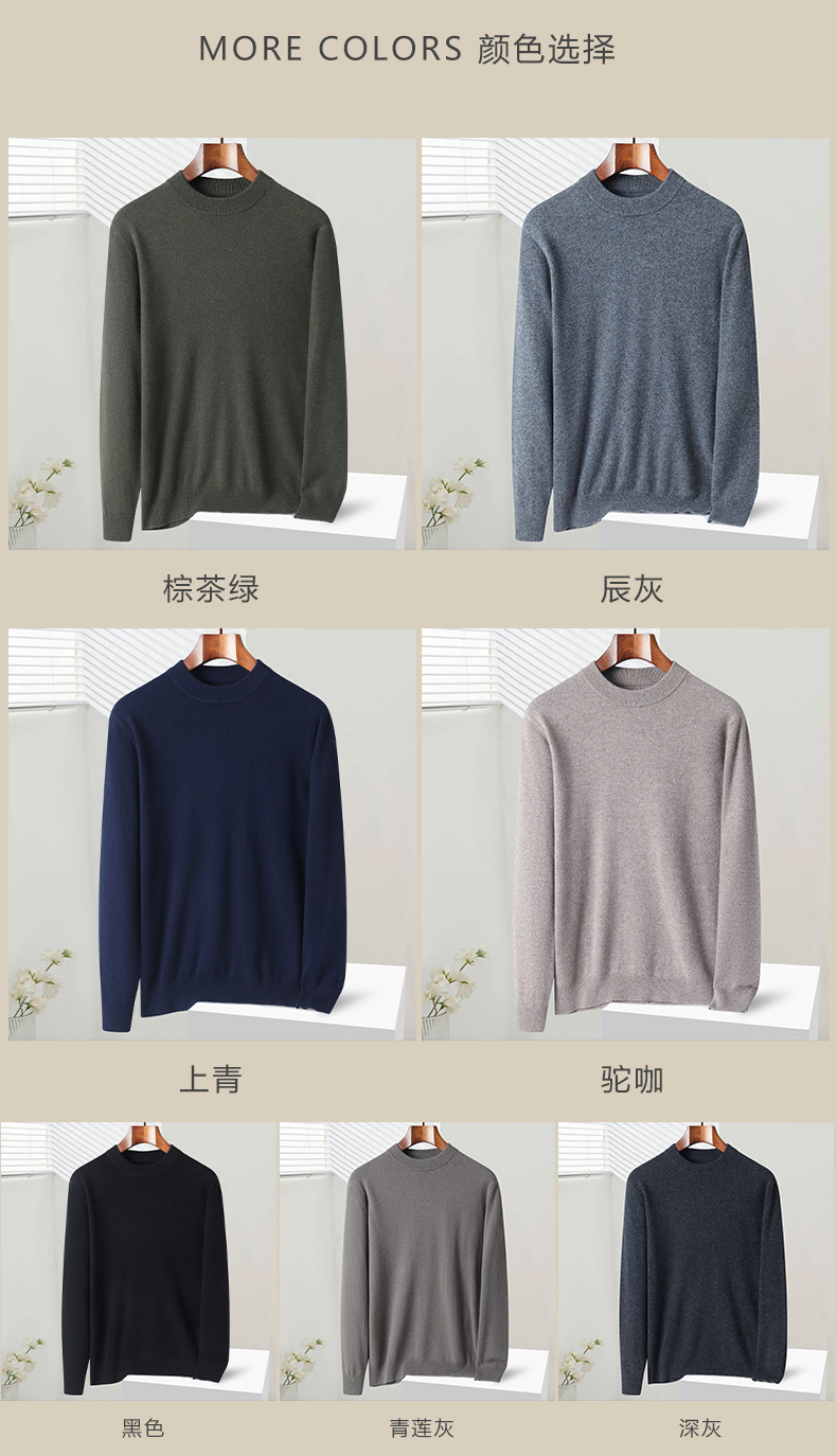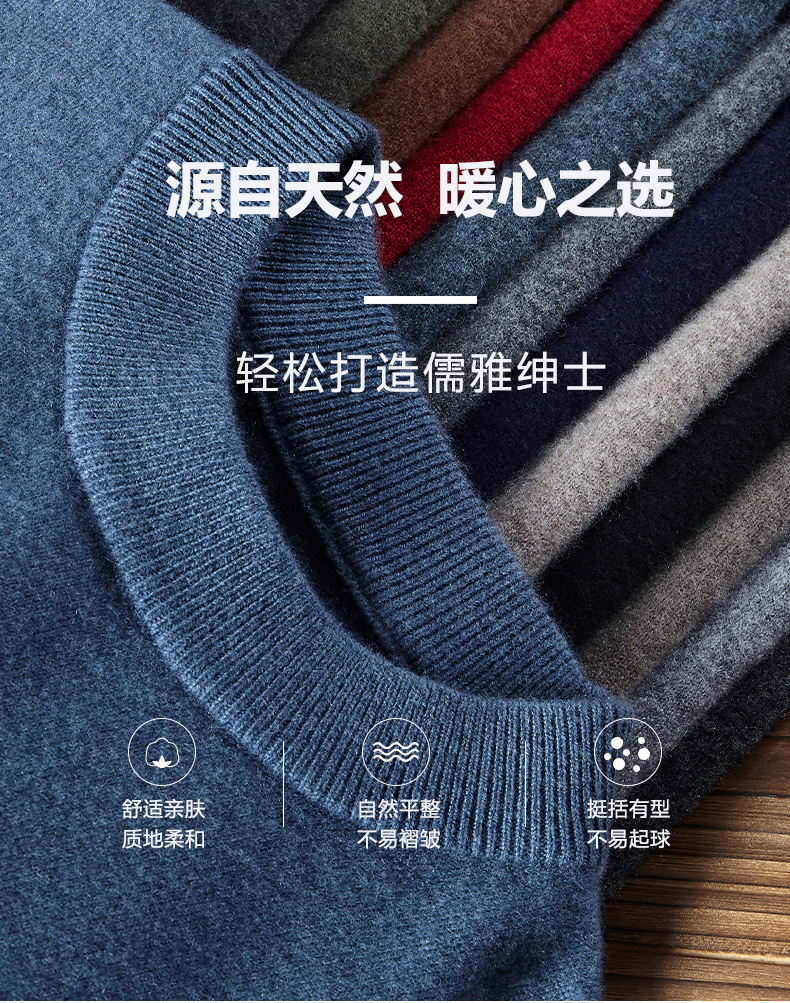 Осенний и зимний кашемировый свитер Пуюань мужской 100% кашемировый круглый воротник продвинутый легкий и роскошный, чистый цвет, теплая шерстяная куртка мужской