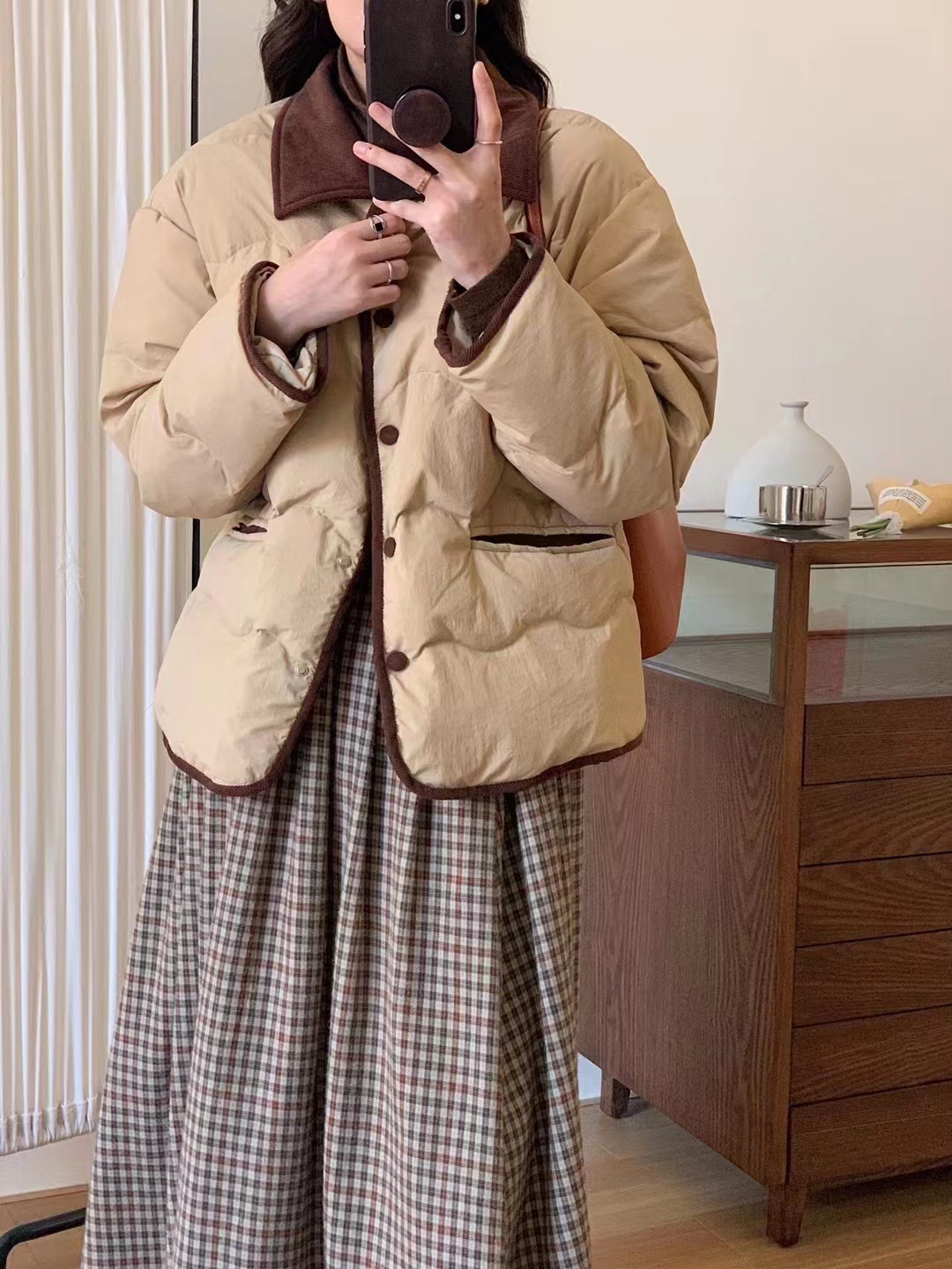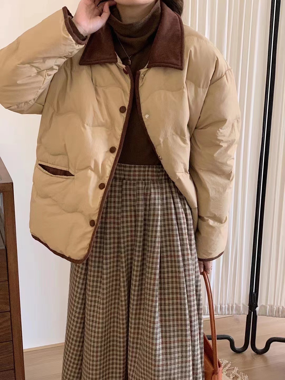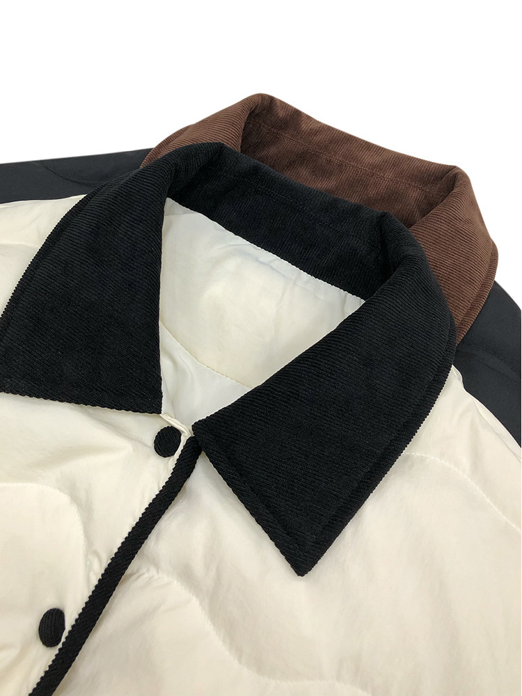 Вельветовая верхняя одежда контрастного цвета из тонкого пуха и хлопка для женщин, осень-зима 2024, короткая хлопковая верхняя одежда и модная куртка с небольшим ароматом