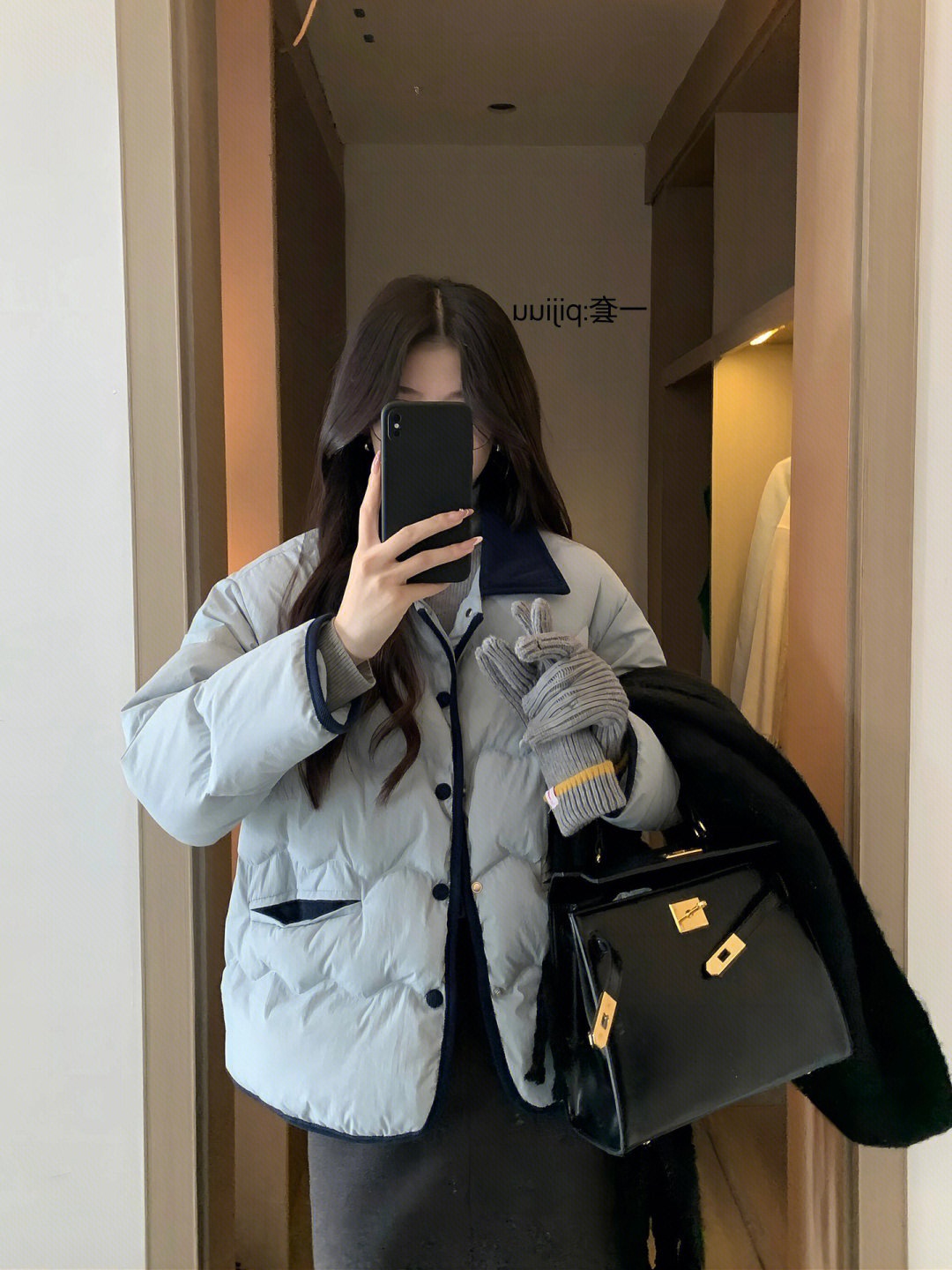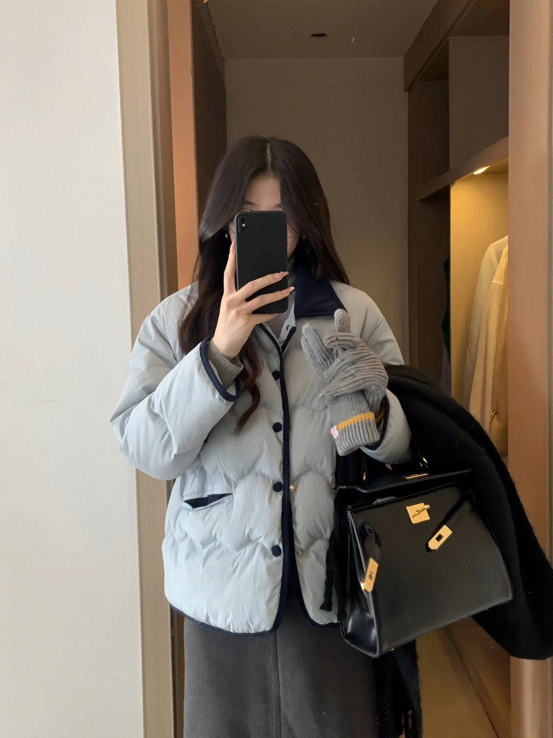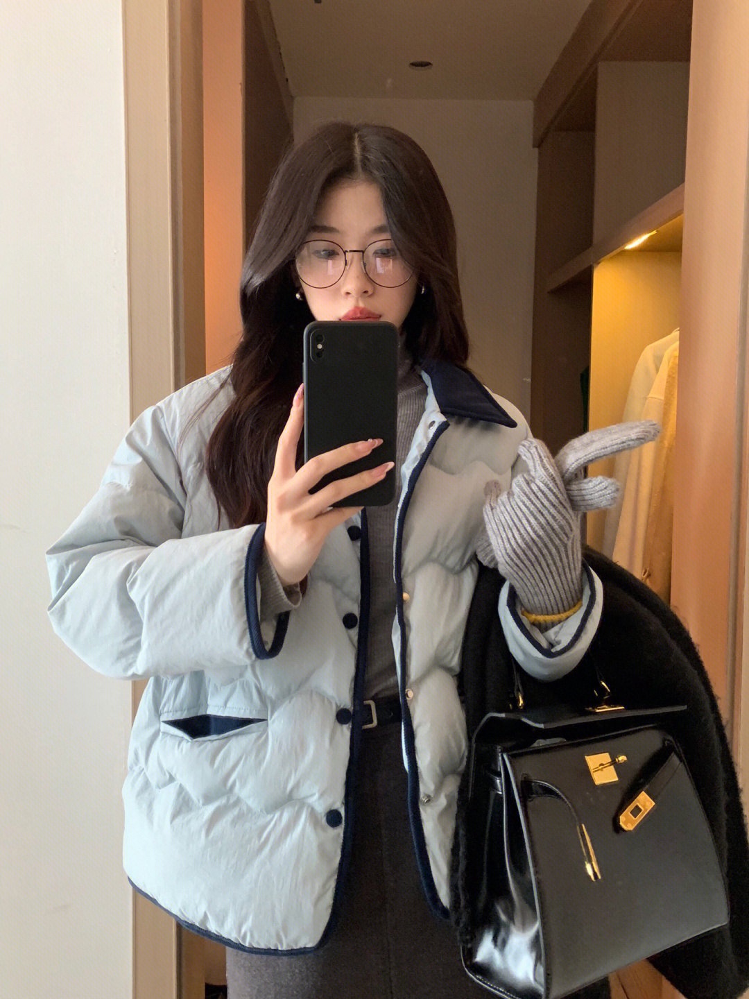Вельветовая верхняя одежда контрастного цвета из тонкого пуха и хлопка для женщин, осень-зима 2024, короткая хлопковая верхняя одежда и модная куртка с небольшим ароматом