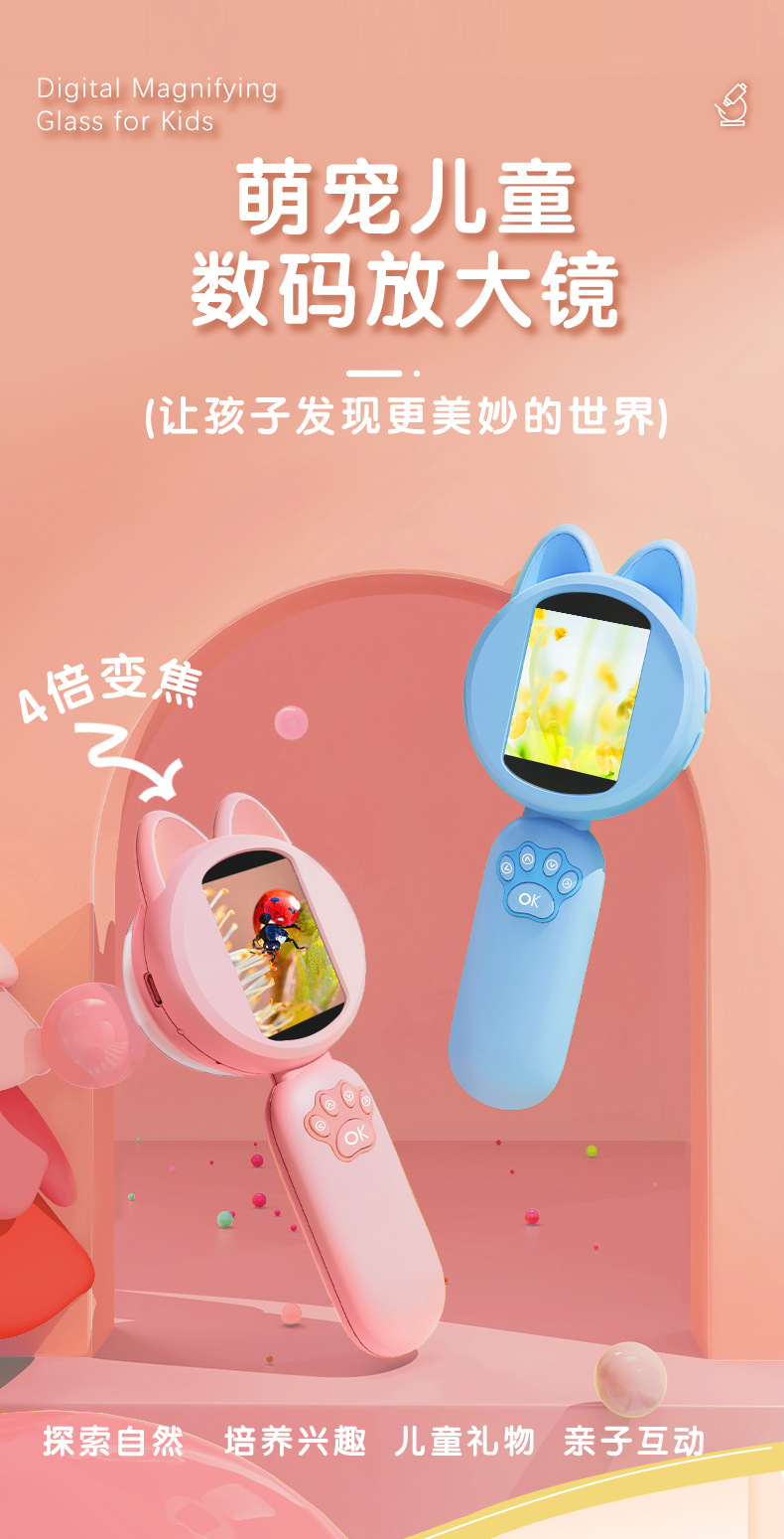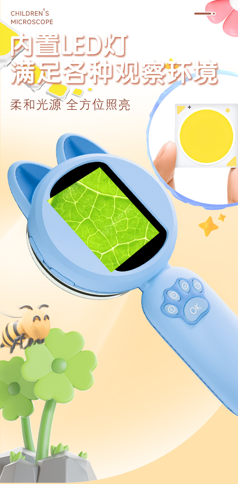 Новый детский портативный цифровой увеличительное стекло HM020B, научный эксперимент, игрушка, цифровой микроскоп для науки и образования