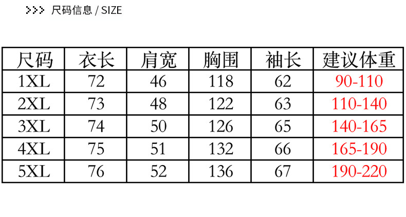 1XL (рекомендуется около 90-110 кг); 2XL (рекомендуется около 110-140 кг); 3XL (рекомендуется около 140-165 кг); 4XL (рекомендуется около 165-190 кг); 5XL (рекомендуется 190-220 кг)