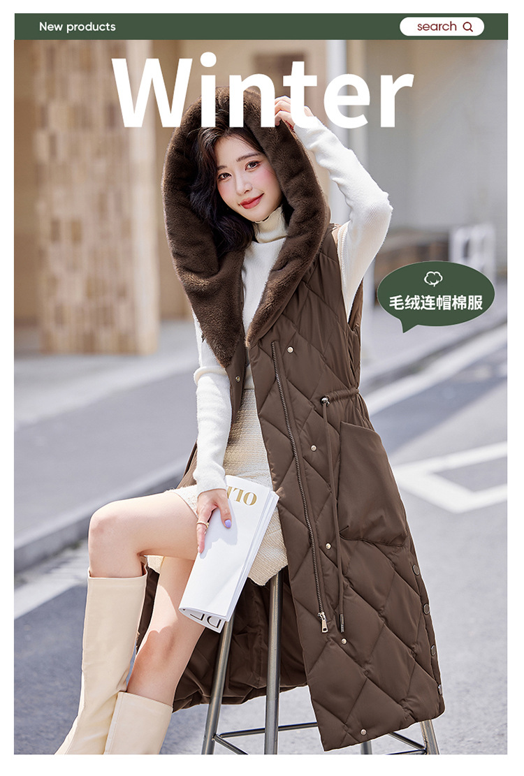 Пуховый хлопковый жилет женский 2024 новый осенний и зимний средний длинный европейский продукт иностранный жилет дизайн коня