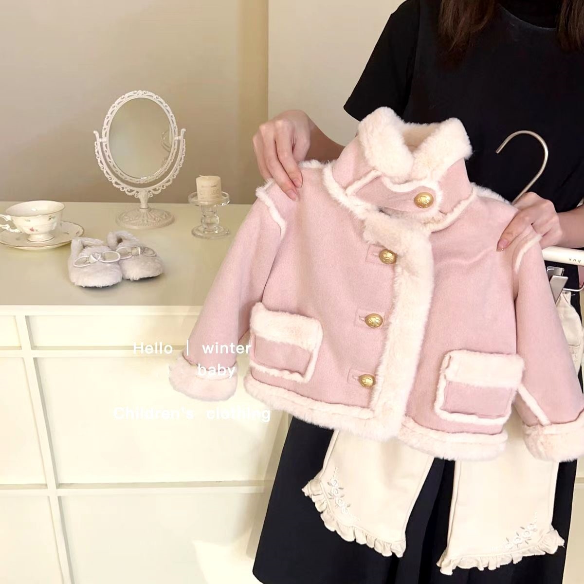 Верхняя одежда для девочек, осенне-зимняя одежда, новинка 2024, бархатные утолщенные детские топы принцессы, модная зимняя детская одежда для малышей