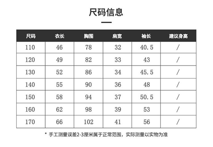 110cm; 120cm; 130cm; 140cm; 150cm; 160cm; 170cm