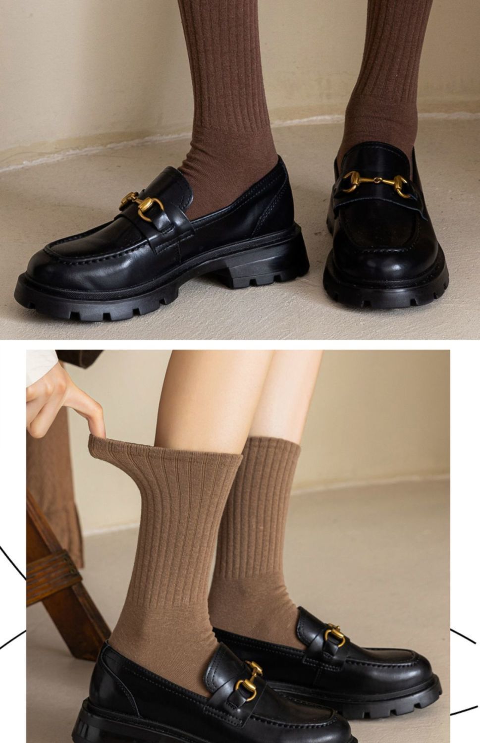 Однотонные носки до середины икры в тренде: